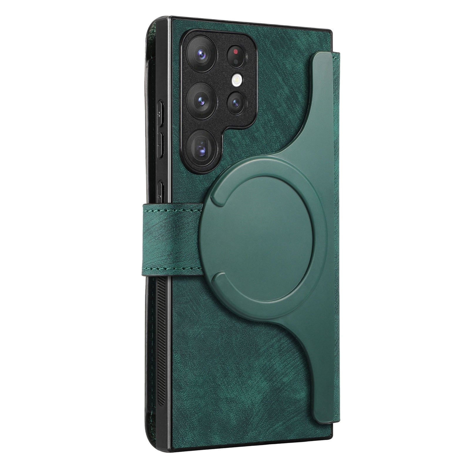 Samsung Galaxy S22 Ultra 5G Retro Leather Phone Case with Enhanced MagSafe Wireless Charging, RFID Anti-theft Protection, Kickstand & Magnetic Lock Wallet Cover