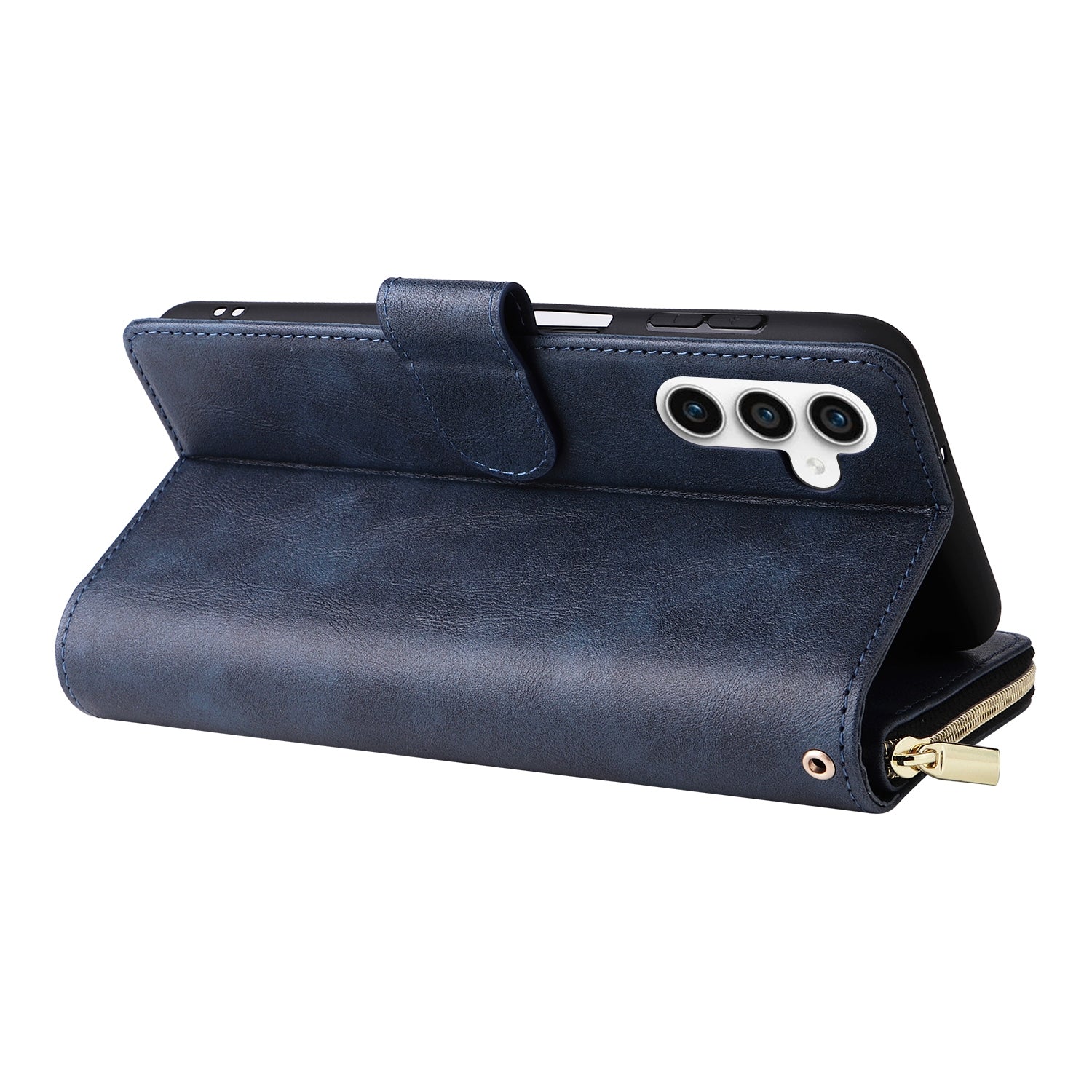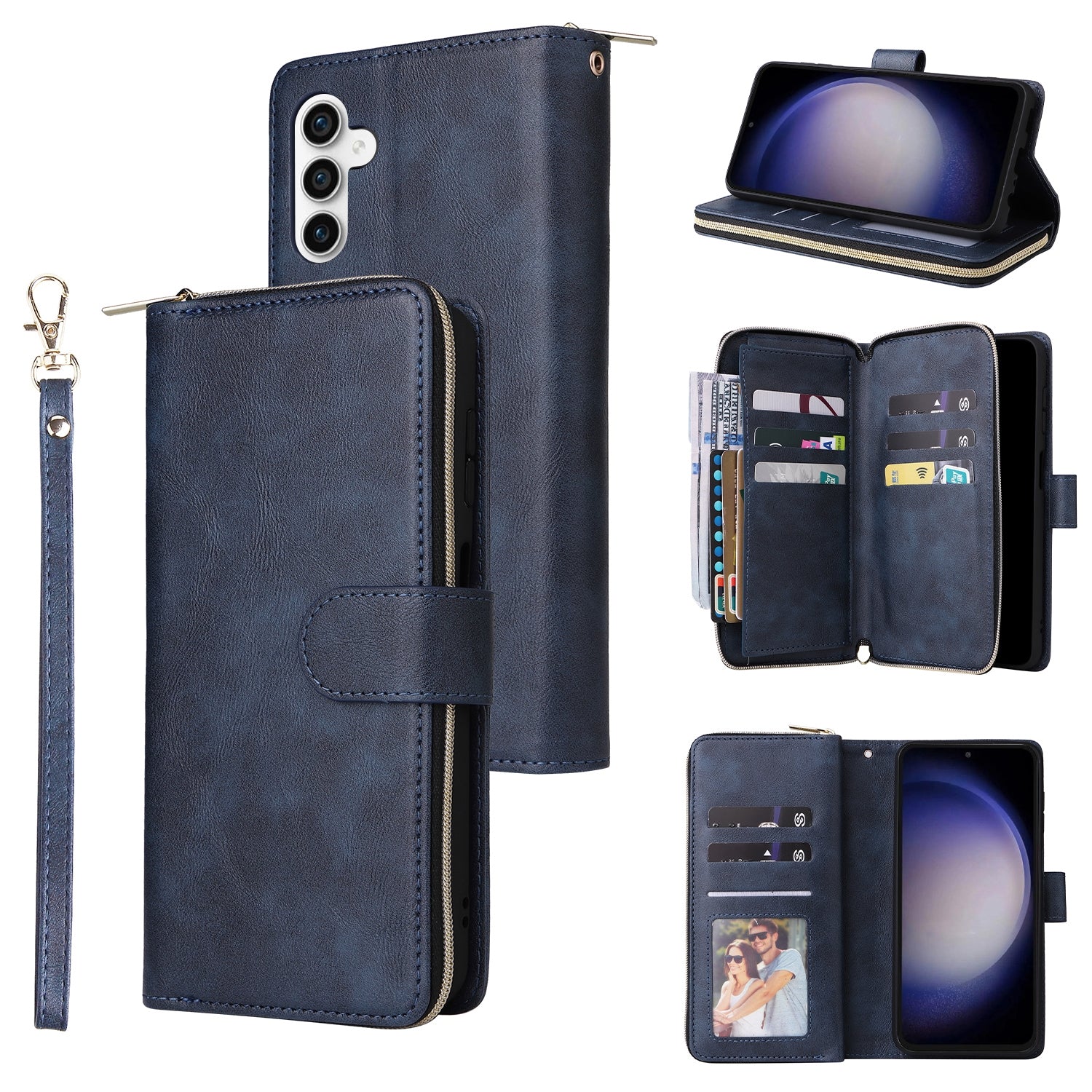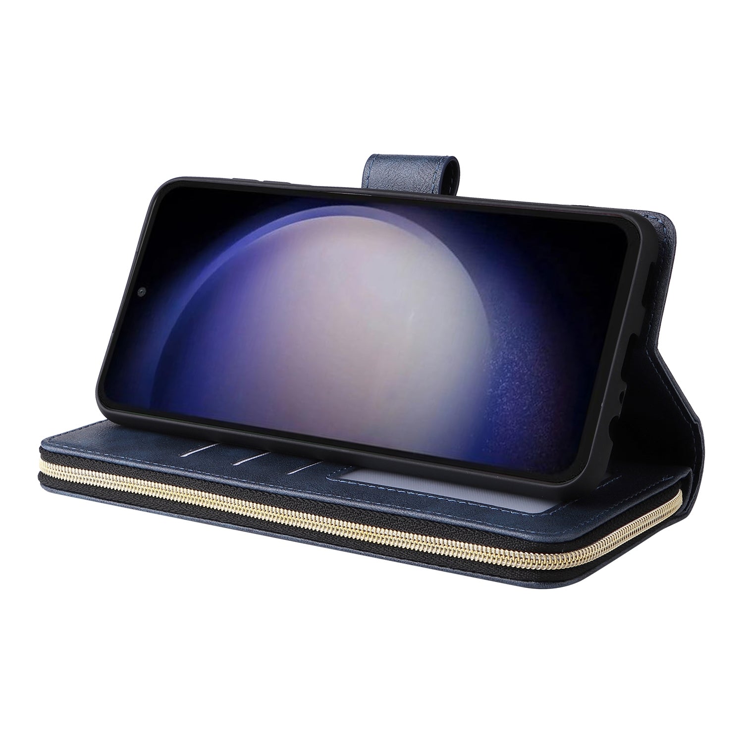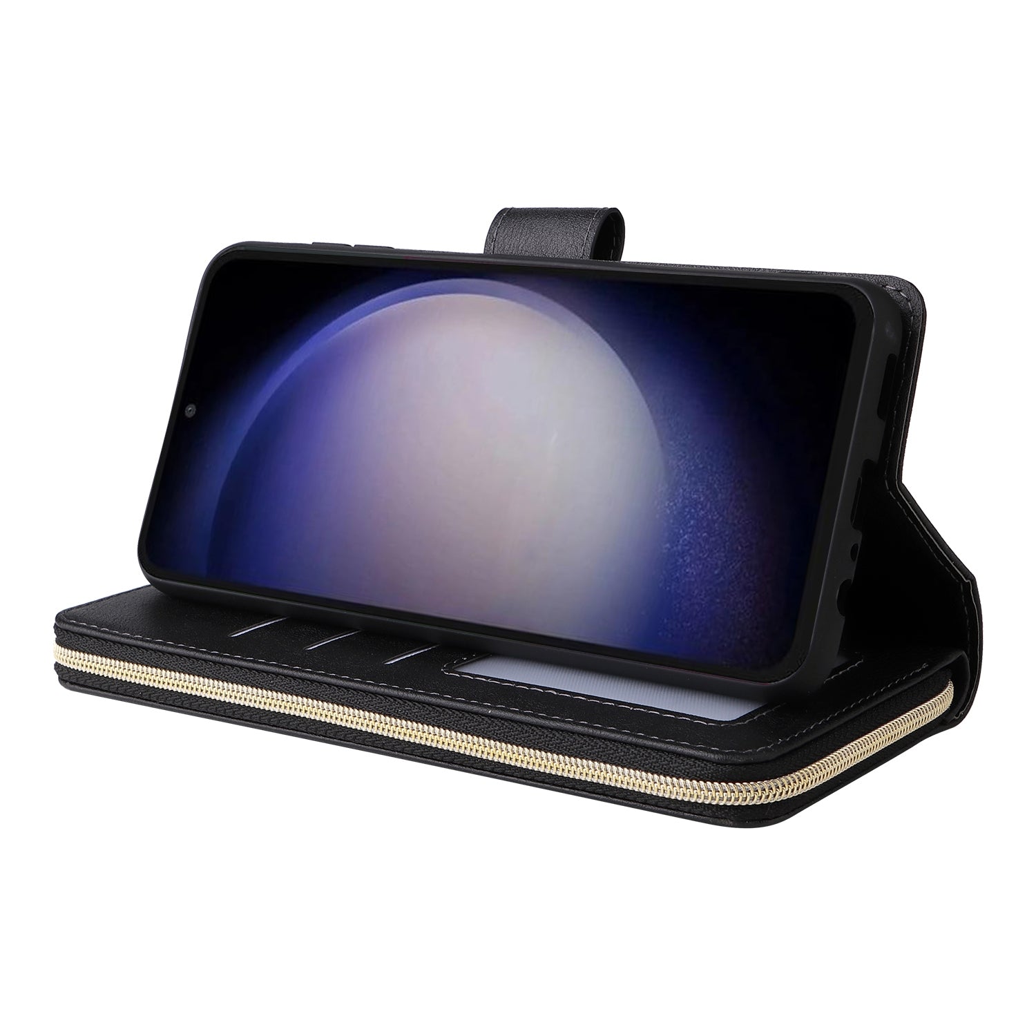 Samsung Galaxy S23 FE 5G Leather Wallet Case with 9 Card Slots, Zipped Cash Pocket & Kickstand - Premium PU TPU Protective Cover with Wrist Strap