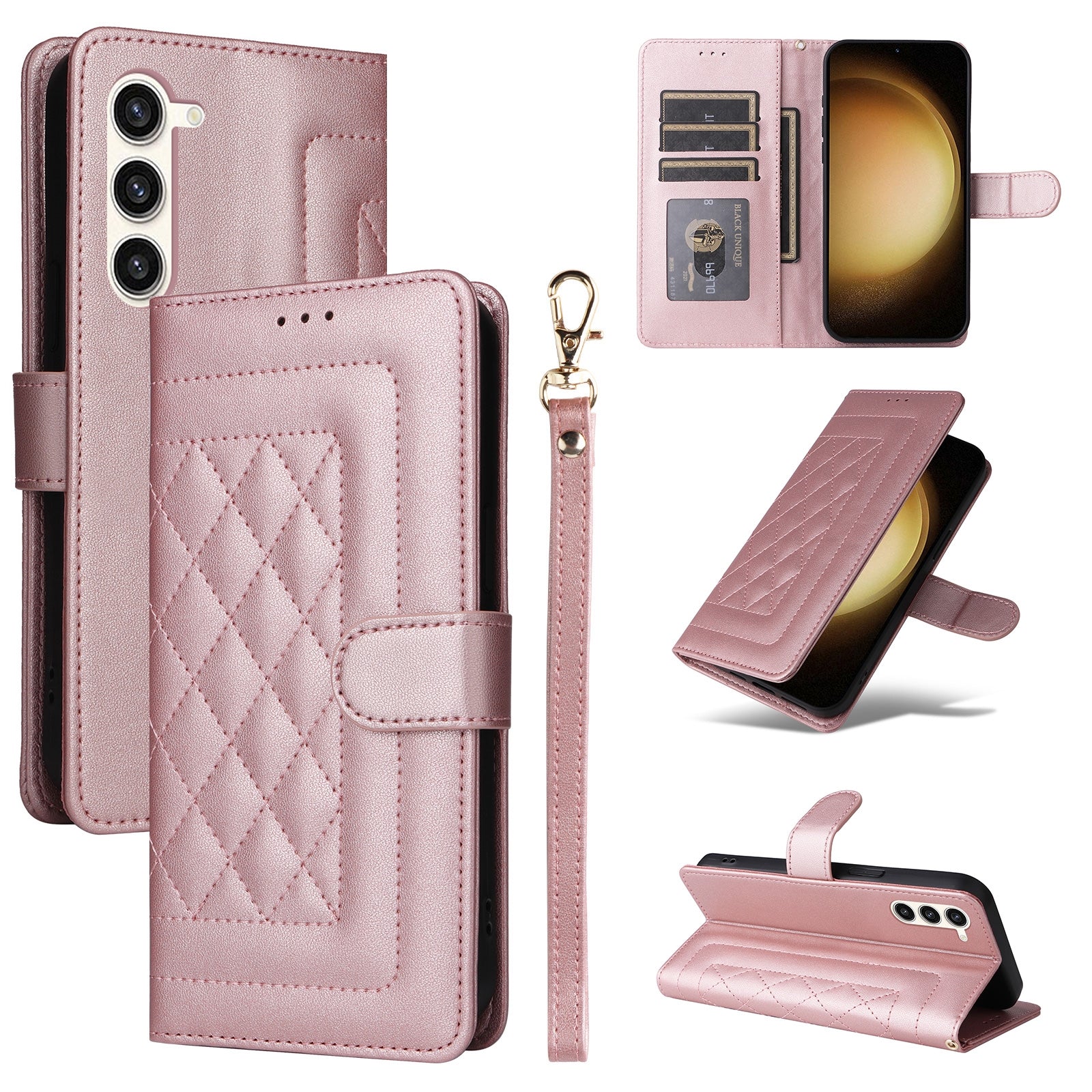 Introducing the ultimate companion for your Samsung Galaxy S23+ 5G - our Diamond Lattice Leather Flip Phone Case! Crafted from high-quality PU and TPU materials, this case is not only wear-resistant but also durable, ensuring long-lasting protection and style.