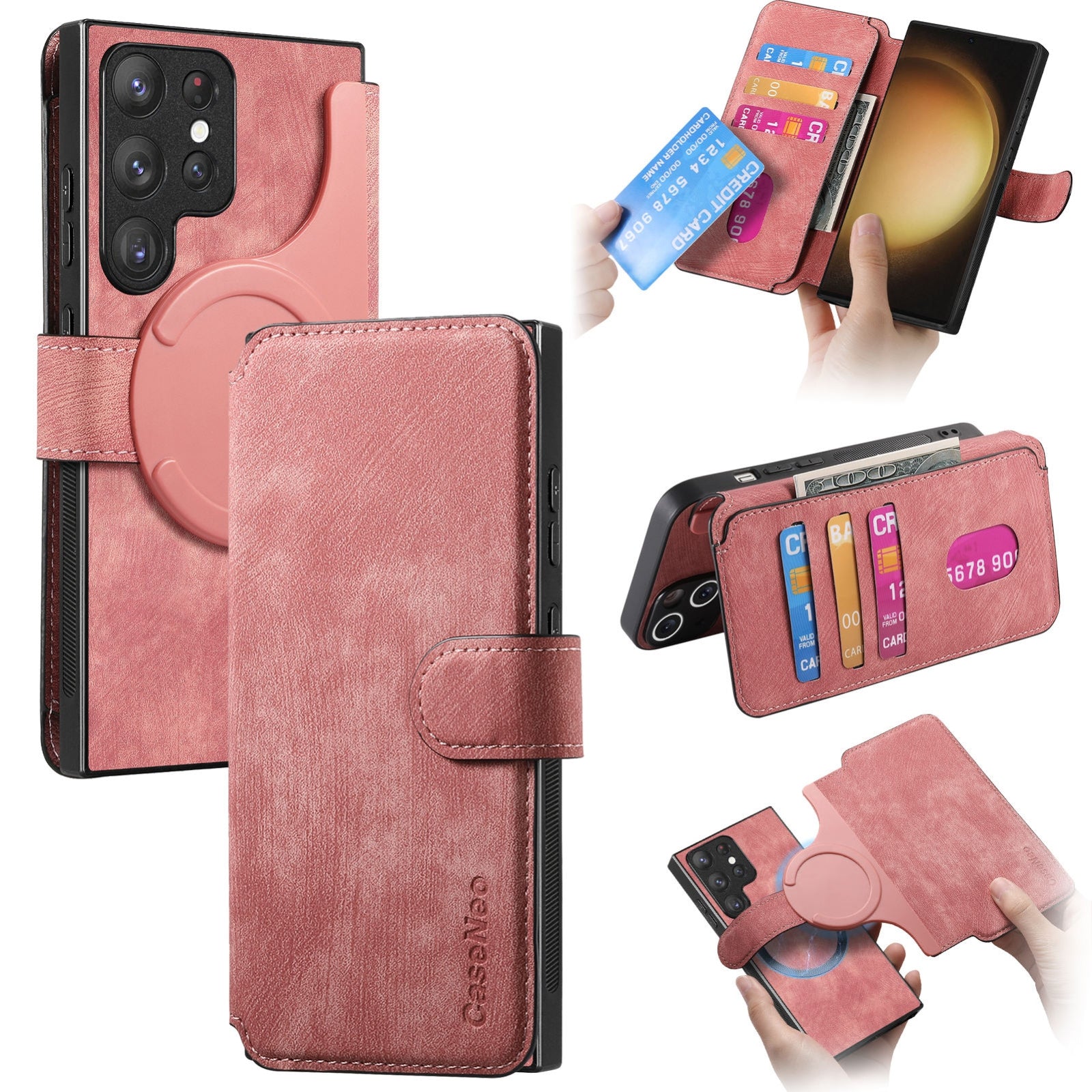 Samsung Galaxy S23 Ultra 5G Retro Leather Phone Case with Enhanced MagSafe Wireless Charging, RFID Anti-theft Protection, Kickstand & Magnetic Lock Wallet Cover