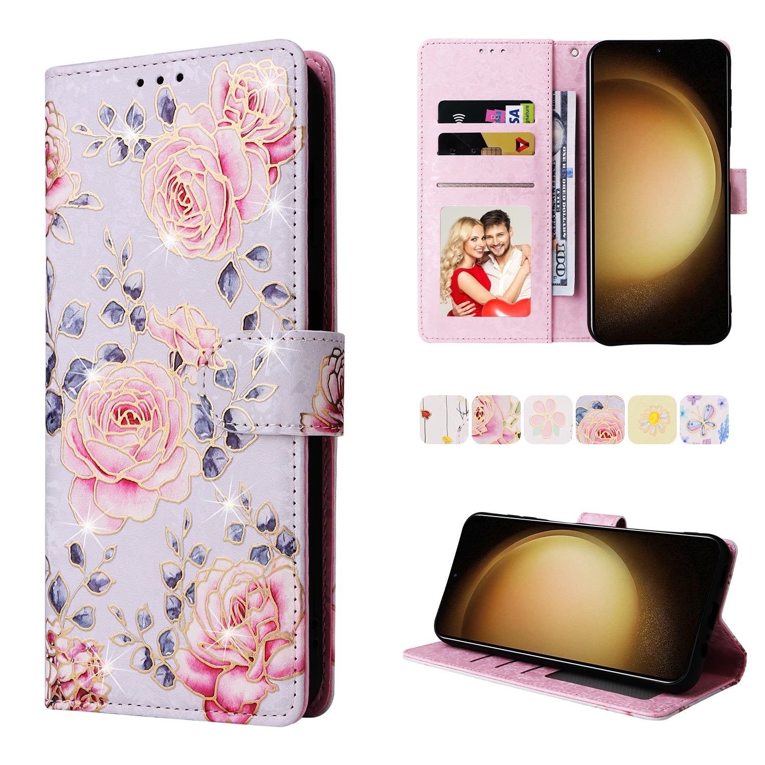 Samsung Galaxy S24+ 5G Luxury Bronzing Leather Case - Floral RFID Wallet Cover with Stand & Card Slots