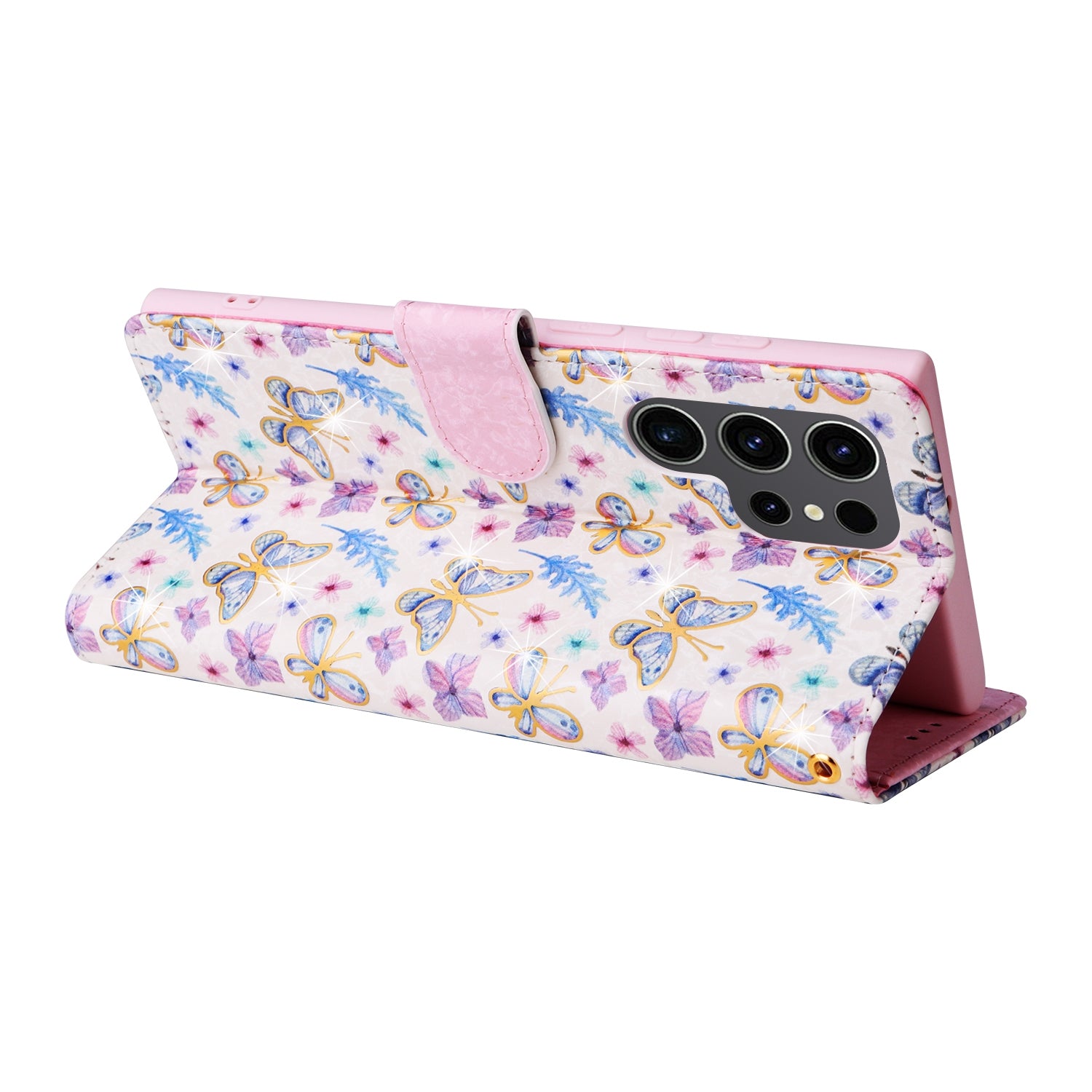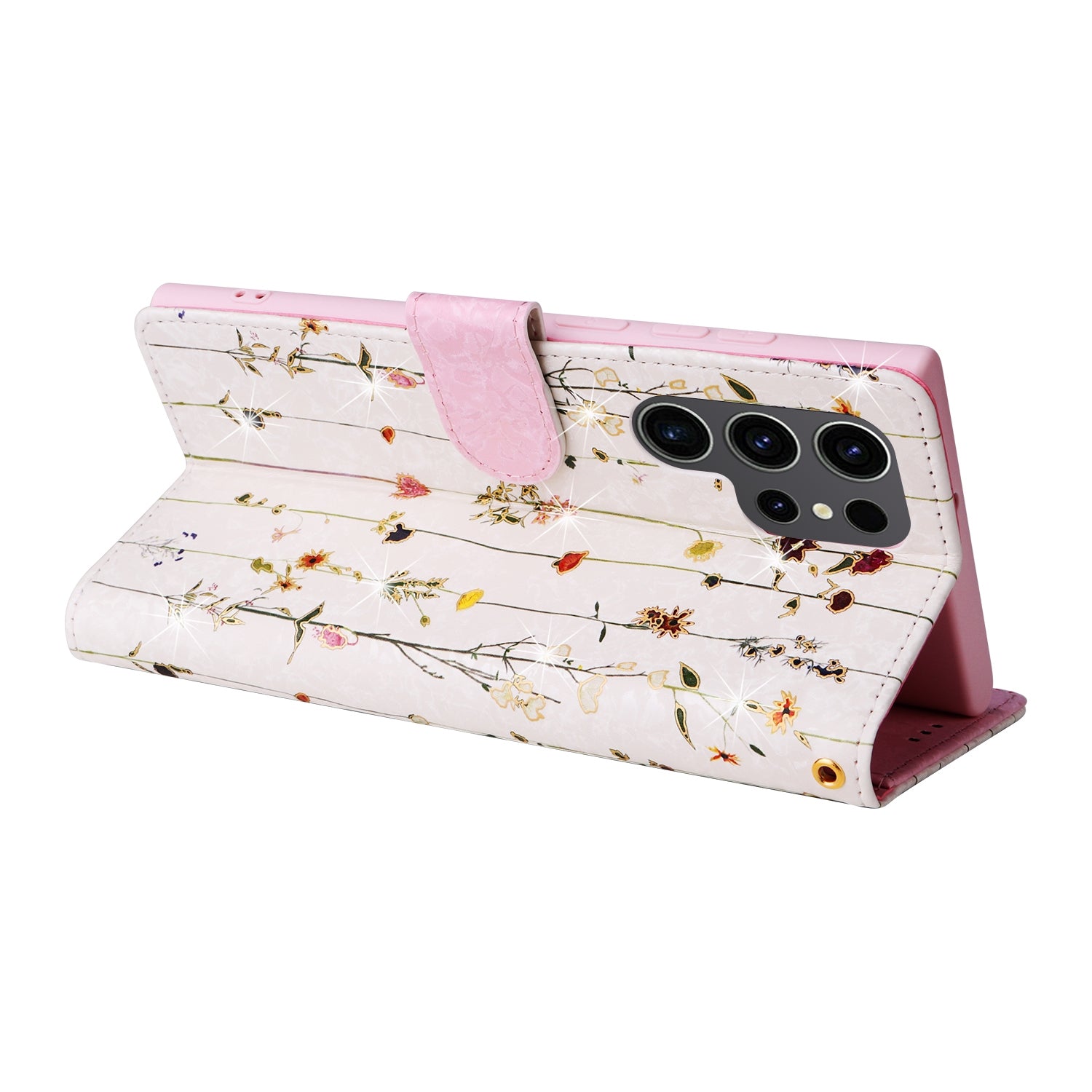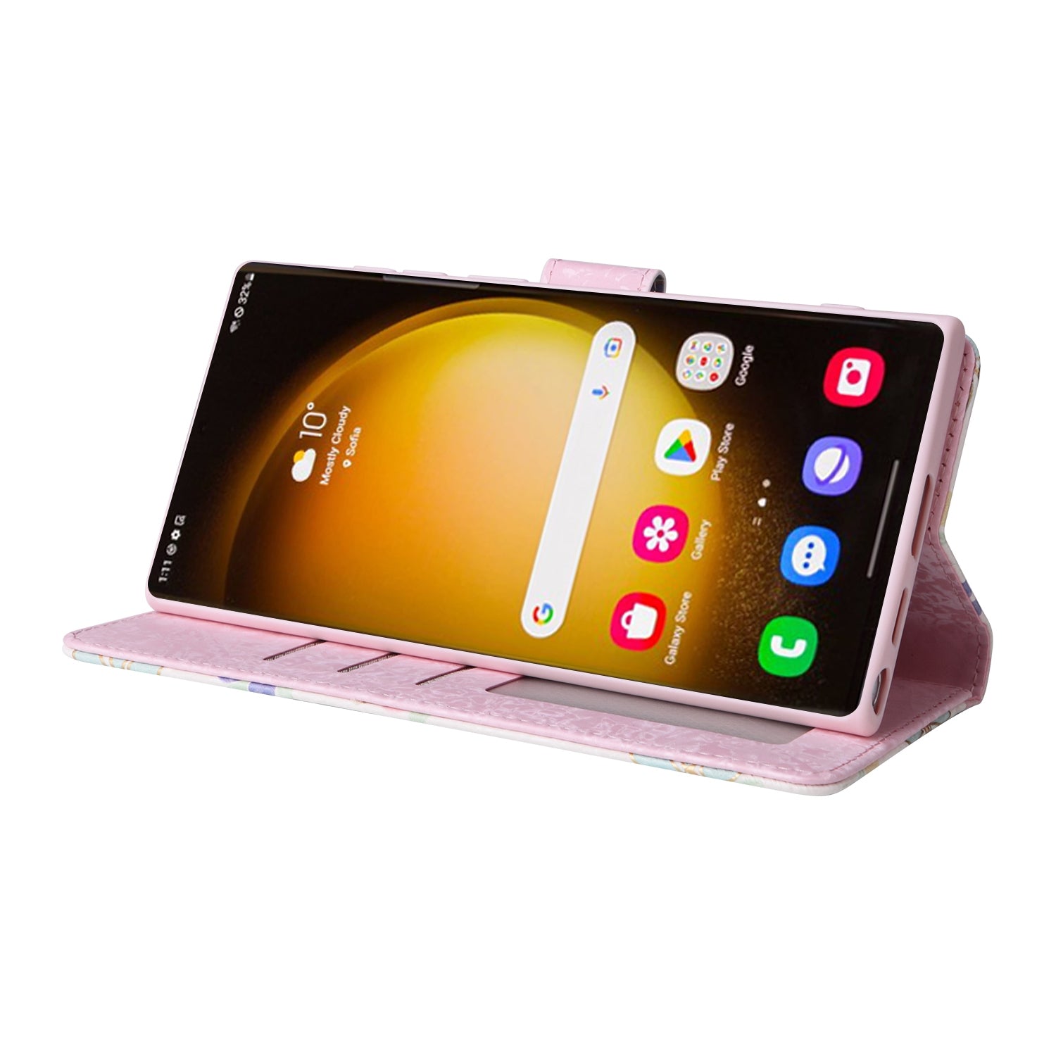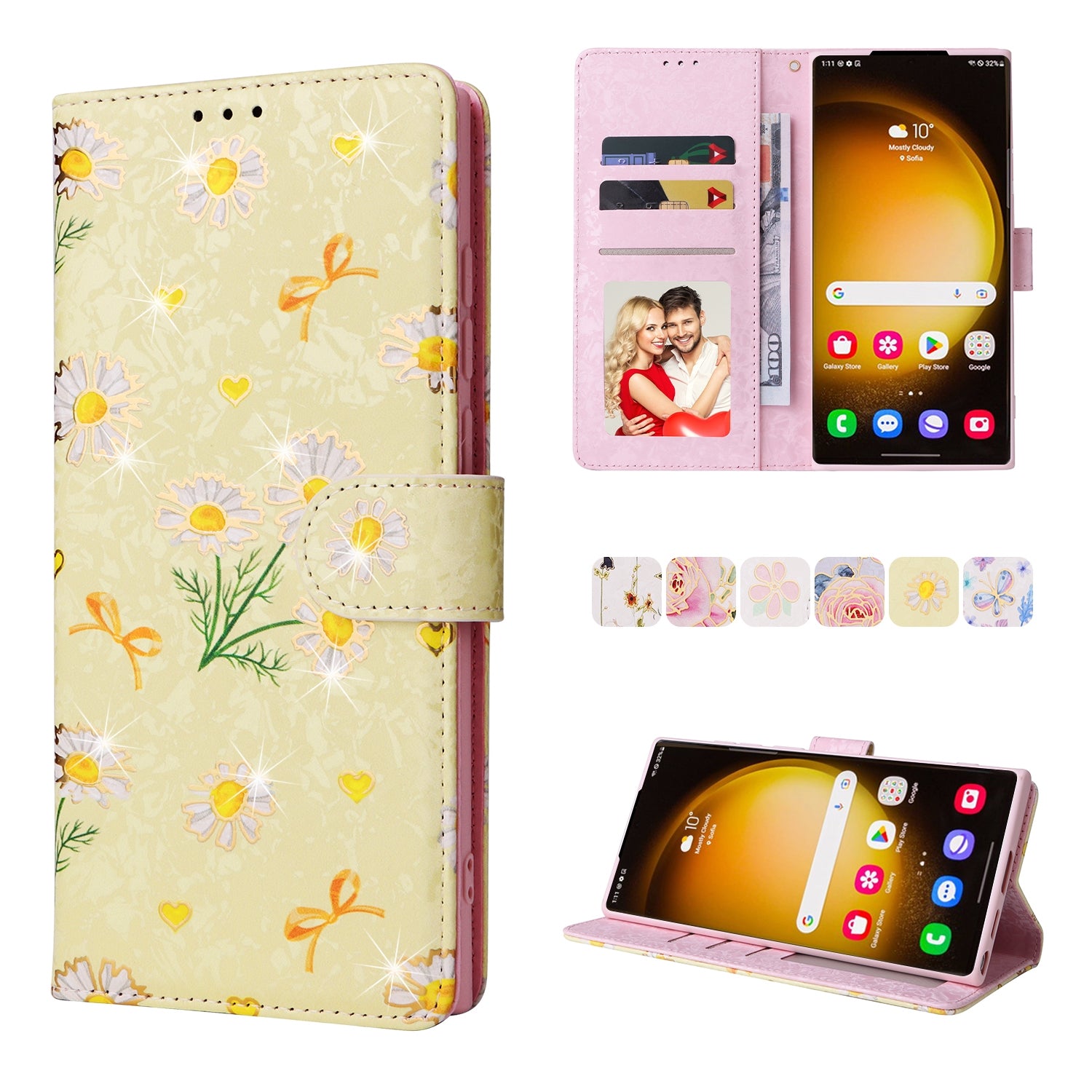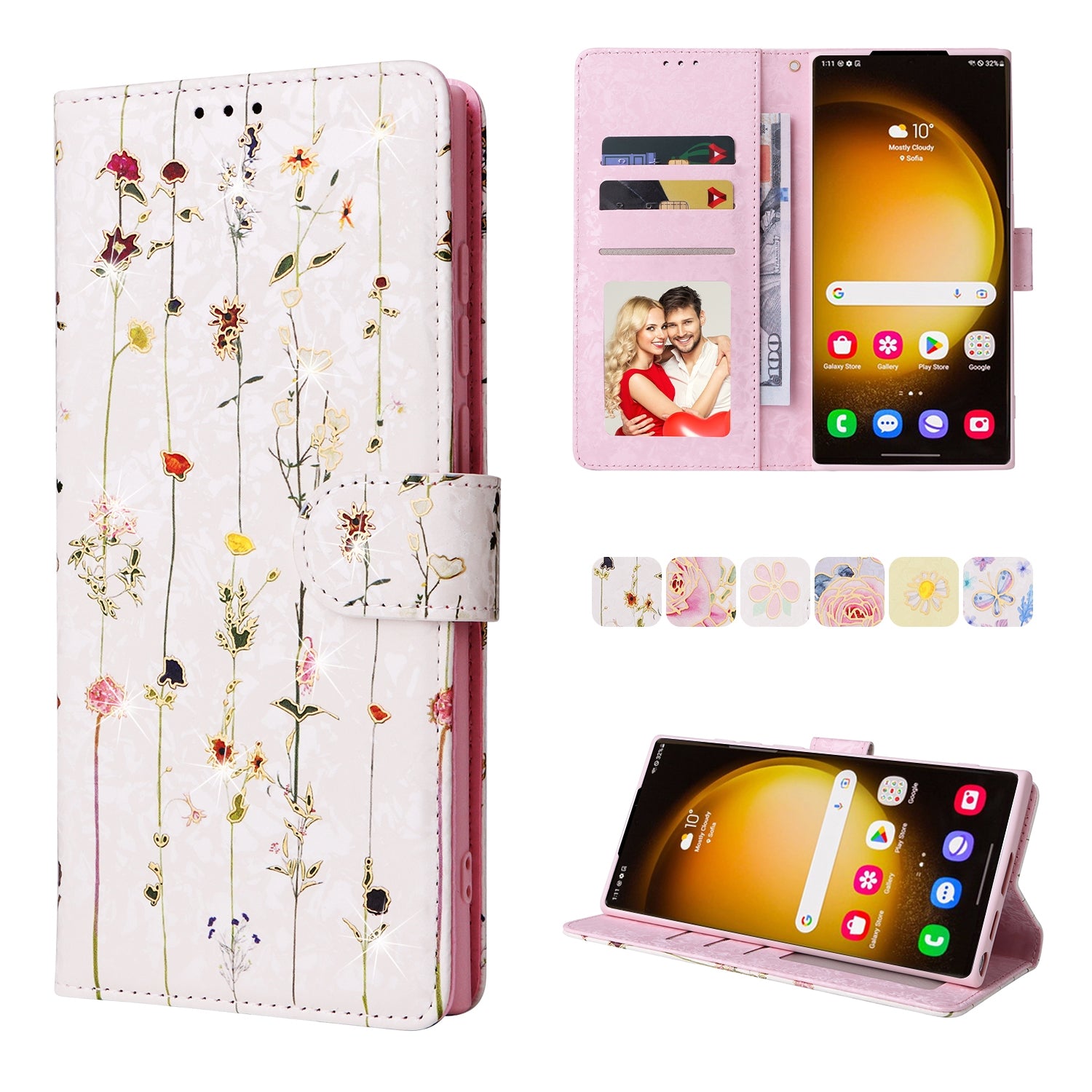 Samsung Galaxy S24 Ultra 5G Luxury Bronzing Leather Case - Floral RFID Wallet Cover with Stand & Card Slots