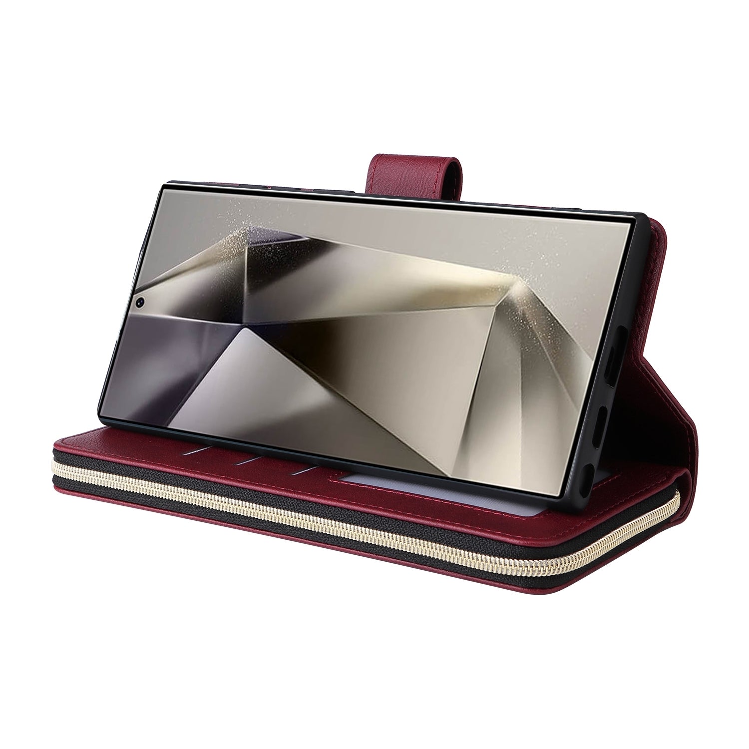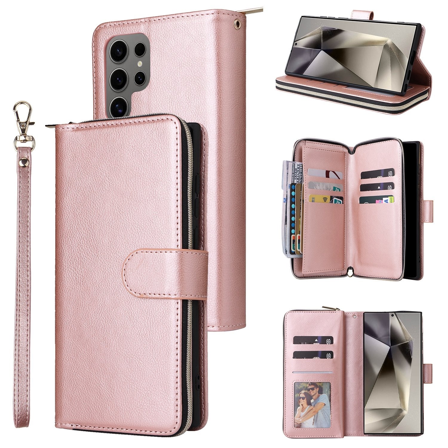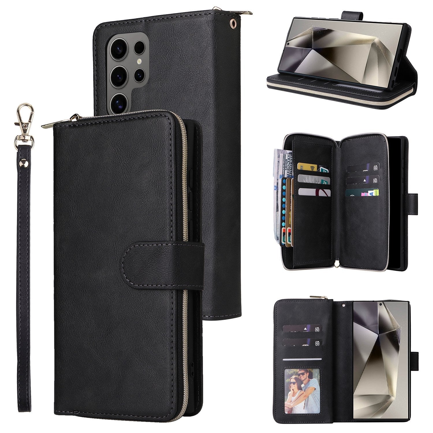 Samsung Galaxy S25 Ultra 5G Leather Wallet Case with 9 Card Slots, Zipped Cash Pocket & Kickstand - Premium PU TPU Protective Cover with Wrist Strap