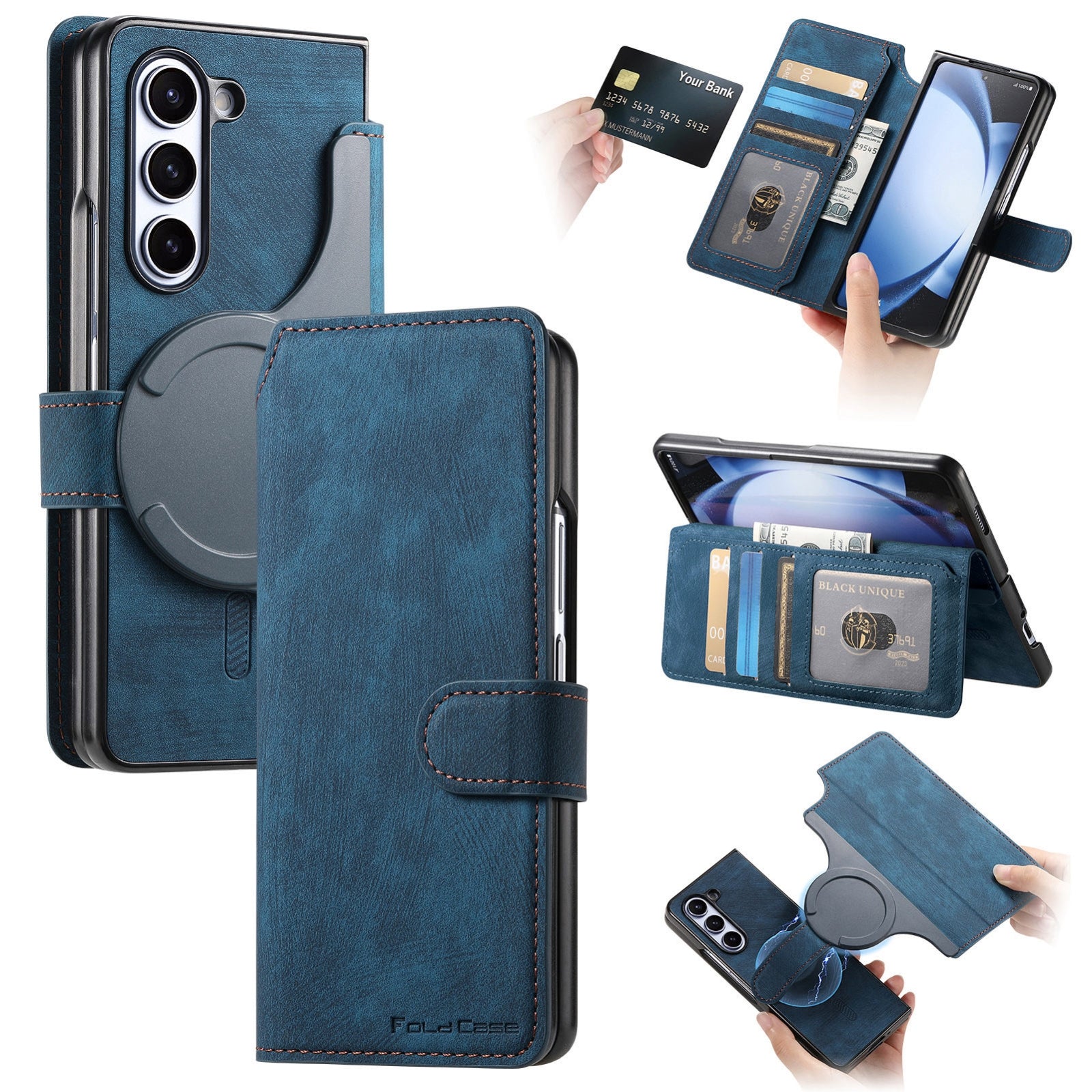 Protect your Samsung Galaxy Z Fold6 in style with this premium retro leather wallet phone case. Designed for durability and functionality, this case combines TPU and high-quality PU leather, offering reliable, long-lasting protection.