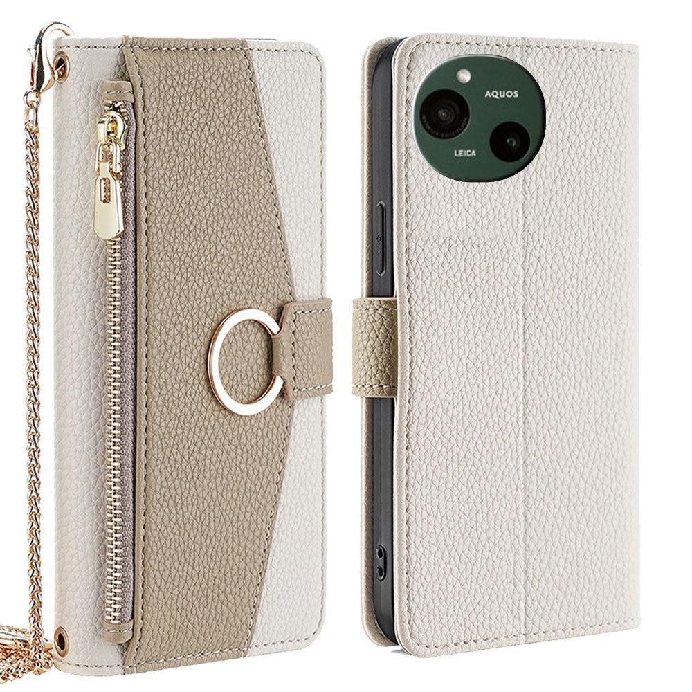 Sharp Aquos R9 Crossbody Phone Case with Litchi Texture Leather, Adjustable Kickstand, Card Slots, Zipper Purse, Makeup Mirror, and TPU Protection