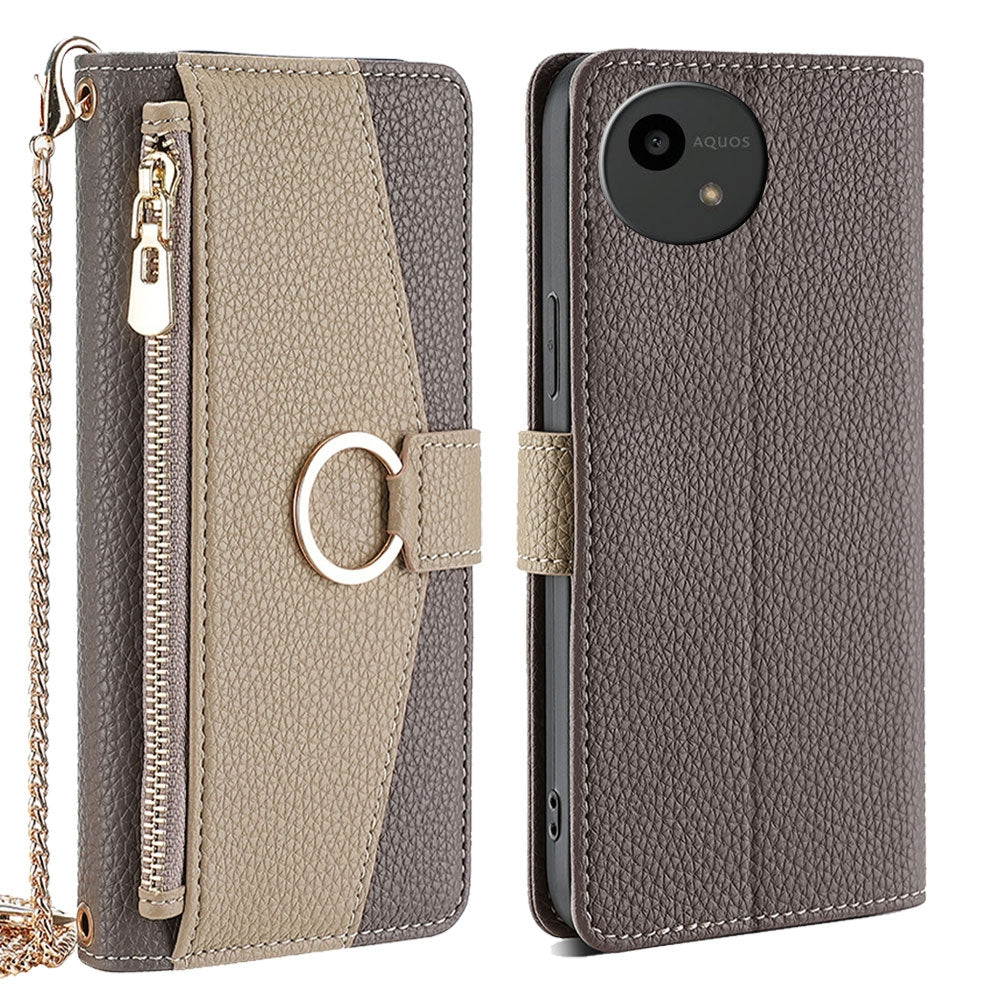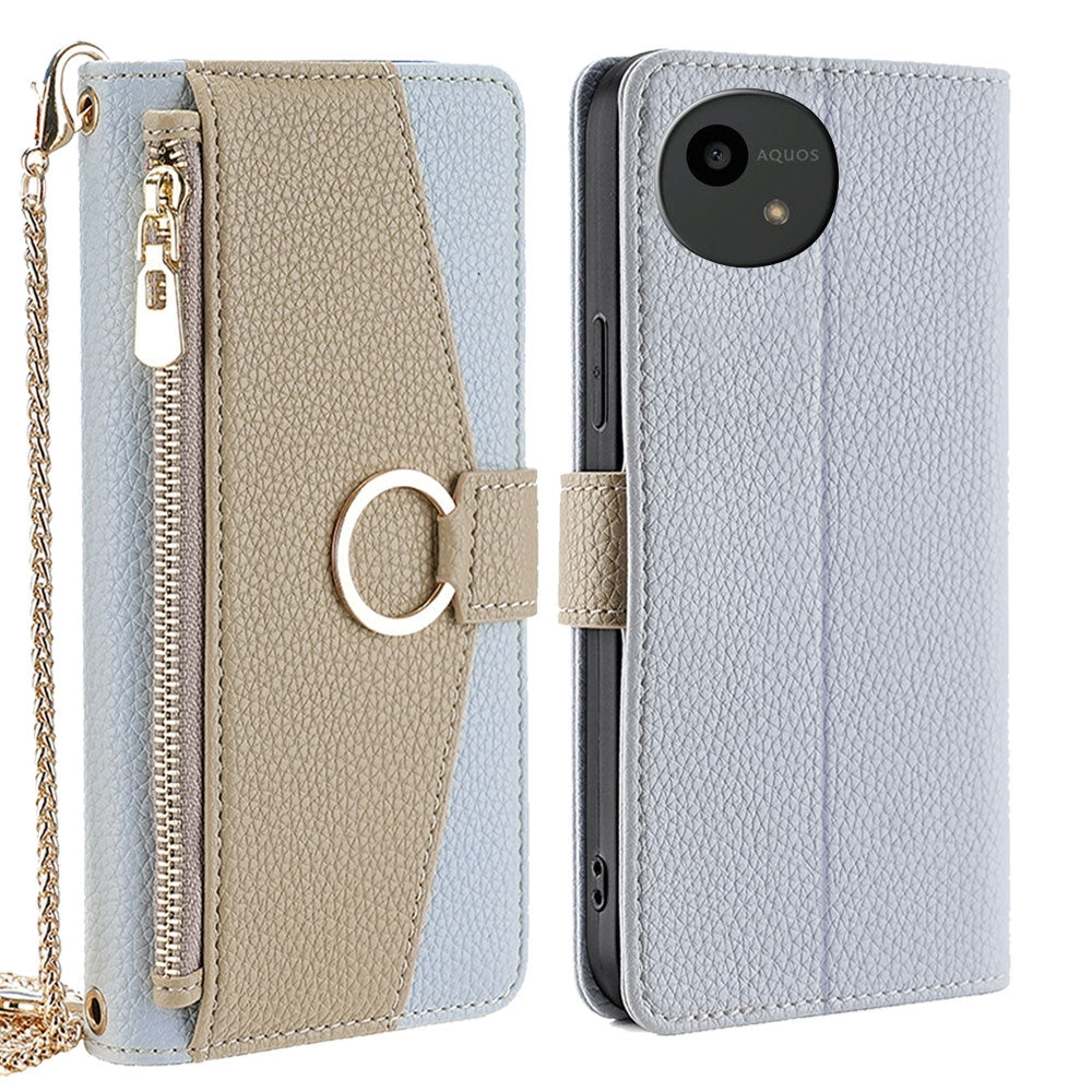 Sharp Aquos wish4 Crossbody Phone Case with Litchi Texture Leather, Adjustable Kickstand, Card Slots, Zipper Purse, Makeup Mirror, and TPU Protection