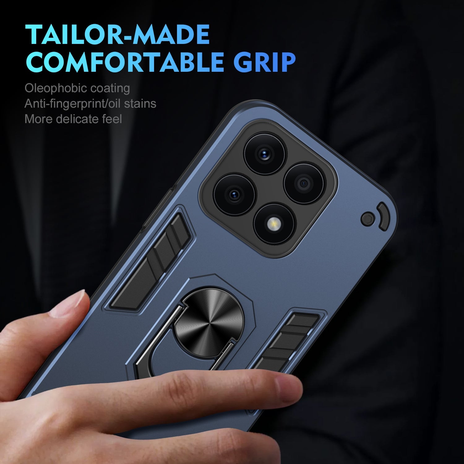 Shockproof Honor X8a Phone Case with 360° Rotatable Metal Ring Holder, Magnetic Car Mount Stand, Ultra-Thin PC & Silicone Protection Cover