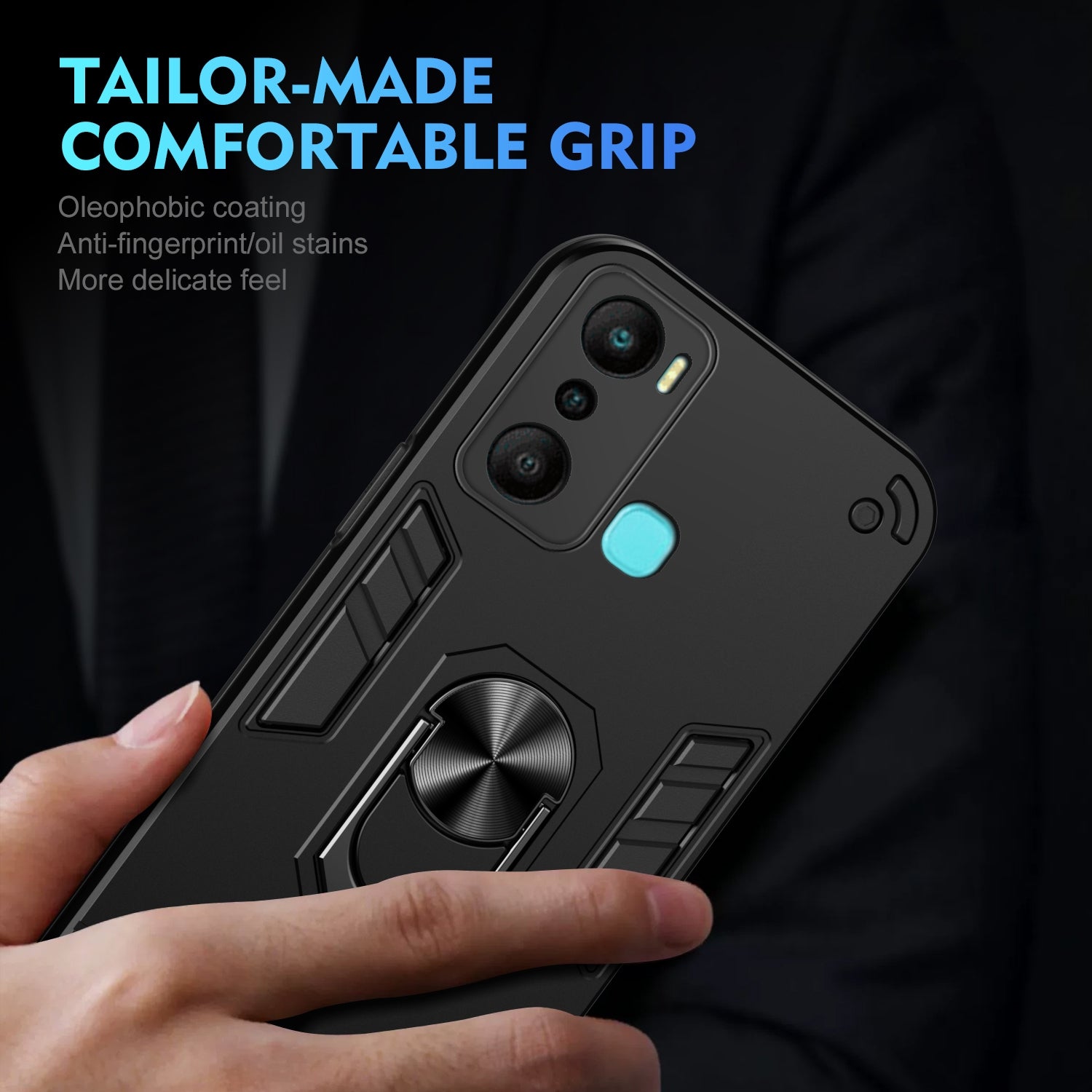 Shockproof Infinix Hot 20i Phone Case with 360° Rotatable Metal Ring Holder, Magnetic Car Mount Stand, Ultra-Thin PC & Silicone Protection Cover