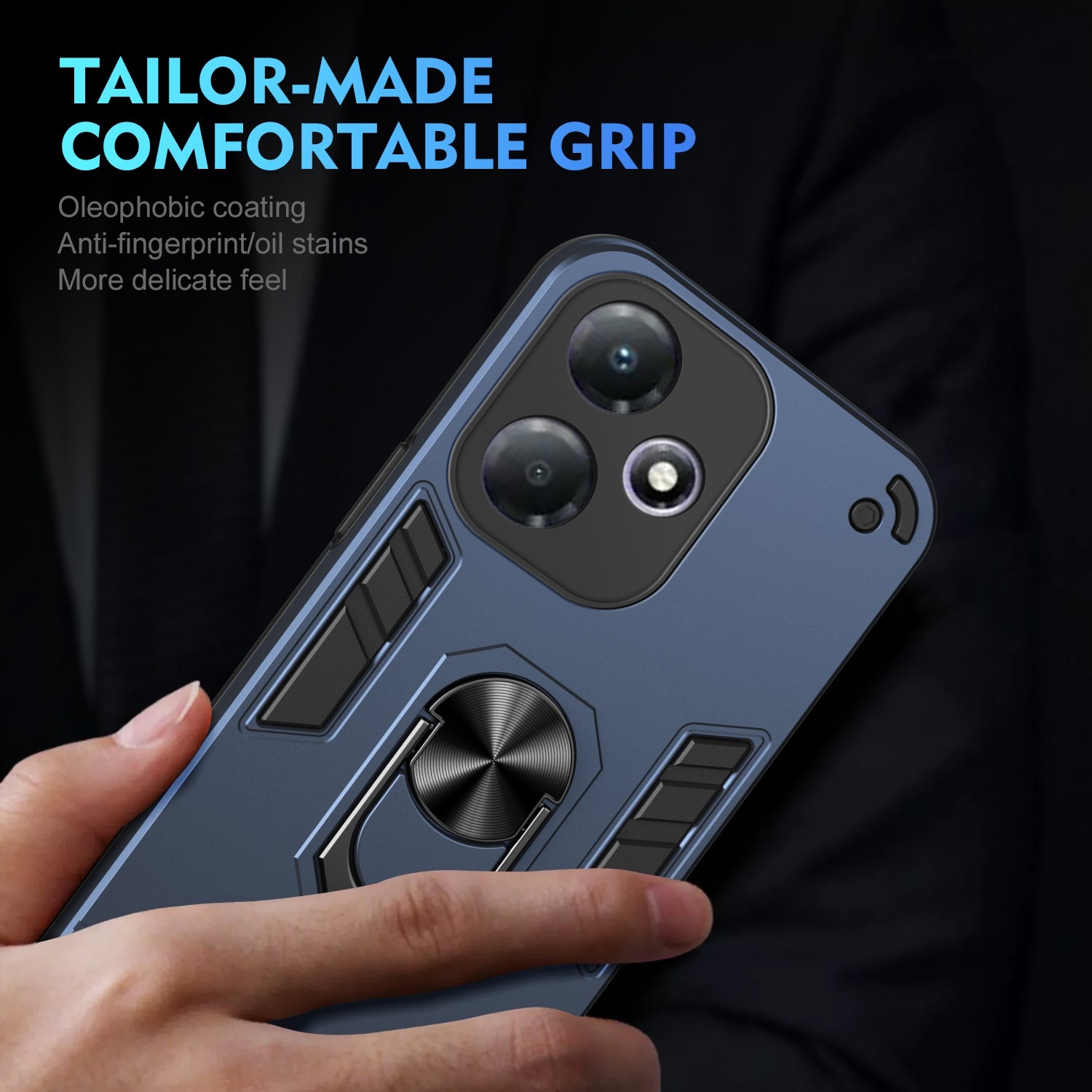 Shockproof Infinix Hot 30 Play Phone Case with 360° Rotatable Metal Ring Holder, Magnetic Car Mount Stand, Ultra-Thin PC & Silicone Protection Cover