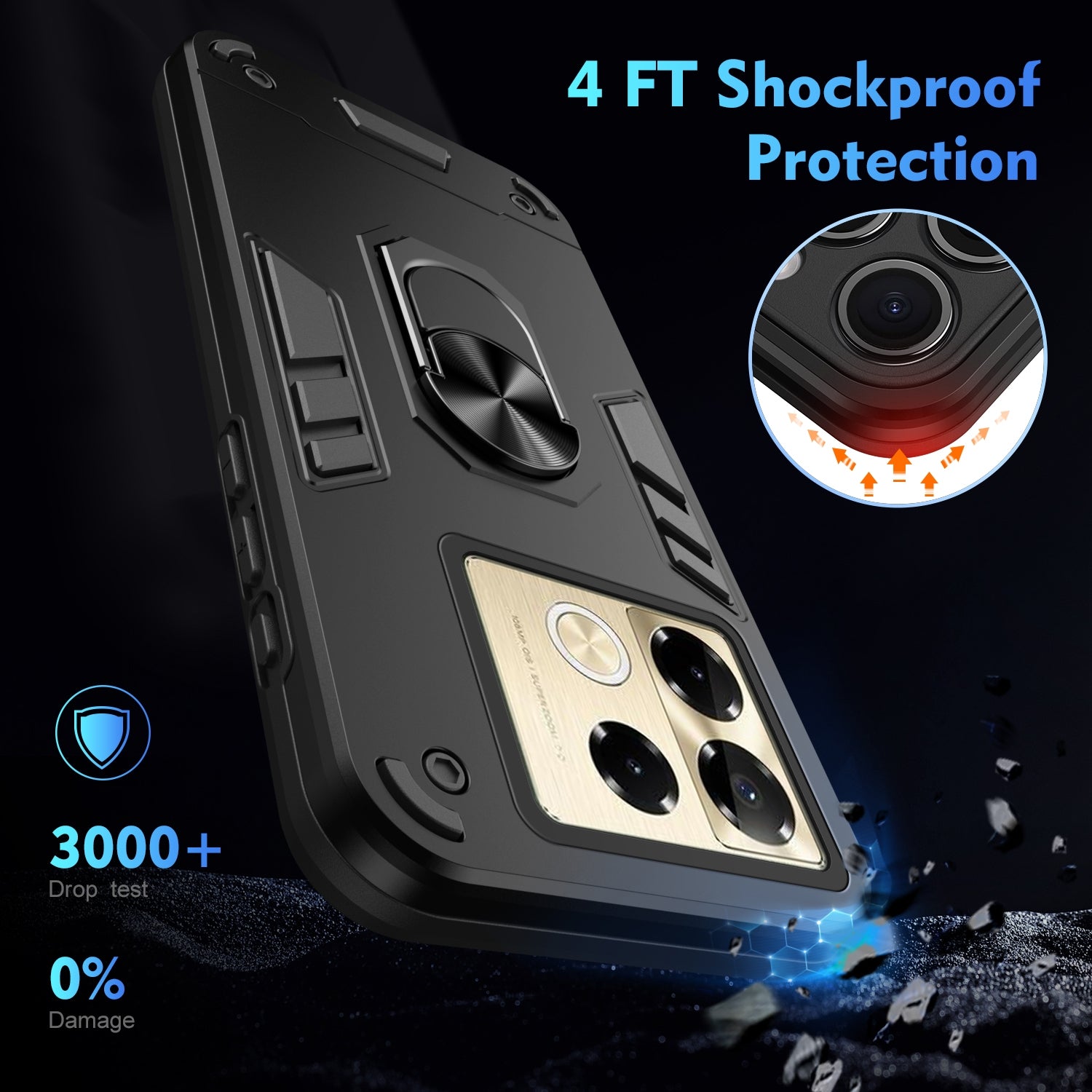 Shockproof Infinix Note 40 Pro 4G Phone Case with 360° Rotatable Metal Ring Holder, Magnetic Car Mount Stand, Ultra-Thin PC & Silicone Protection Cover