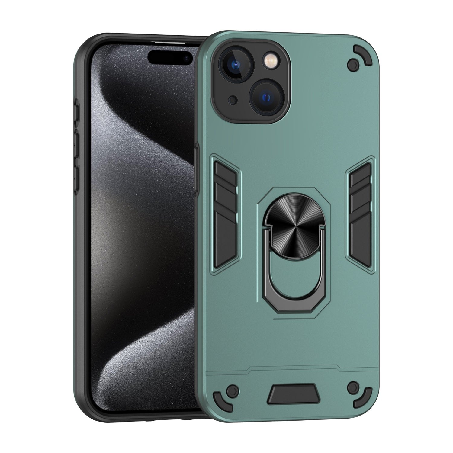 Shockproof iPhone 13 Phone Case with 360° Rotatable Metal Ring Holder, Magnetic Car Mount Stand, Ultra-Thin PC & Silicone Protection Cover