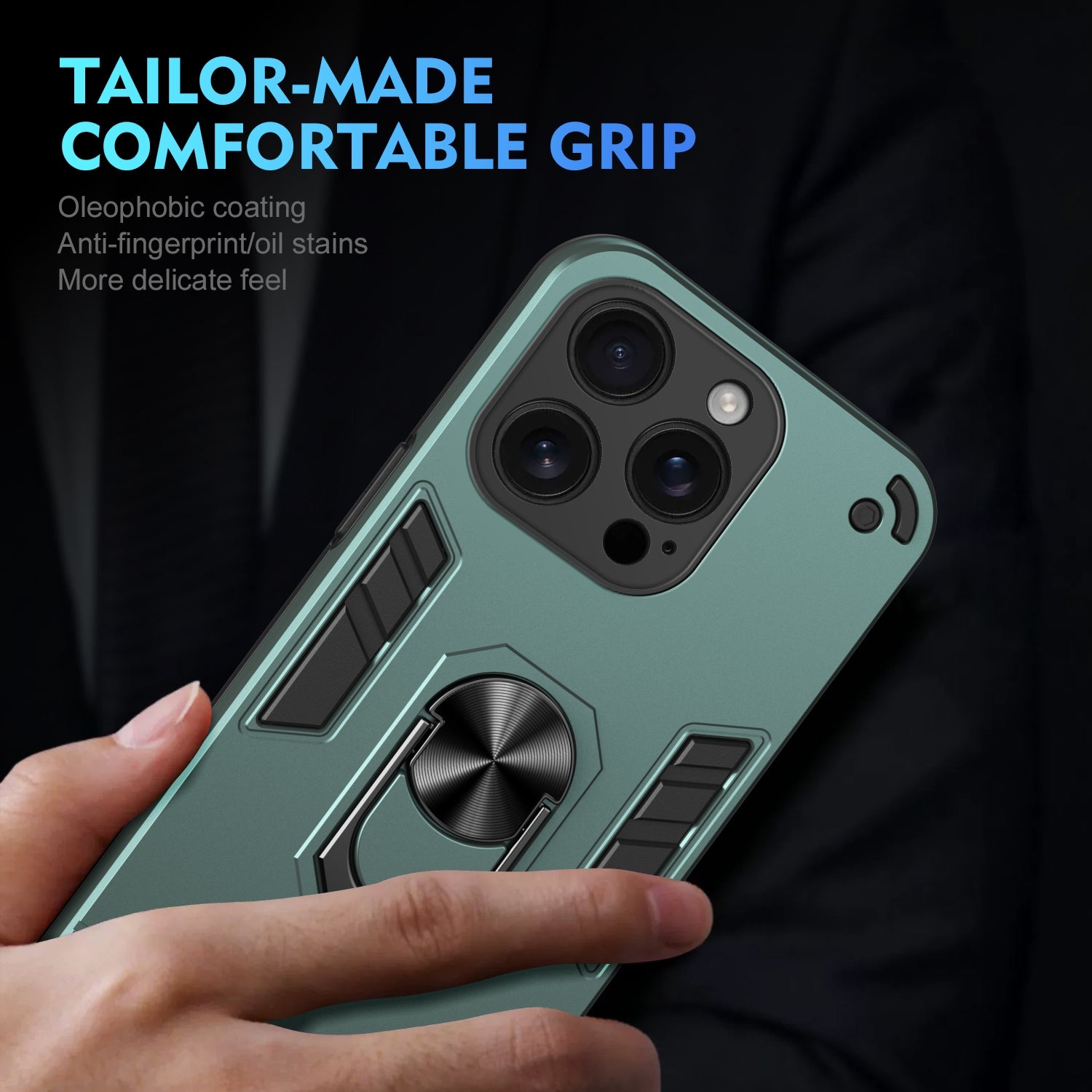 Shockproof iPhone 16 Pro Phone Case with 360° Rotatable Metal Ring Holder, Magnetic Car Mount Stand, Ultra-Thin PC & Silicone Protection Cover