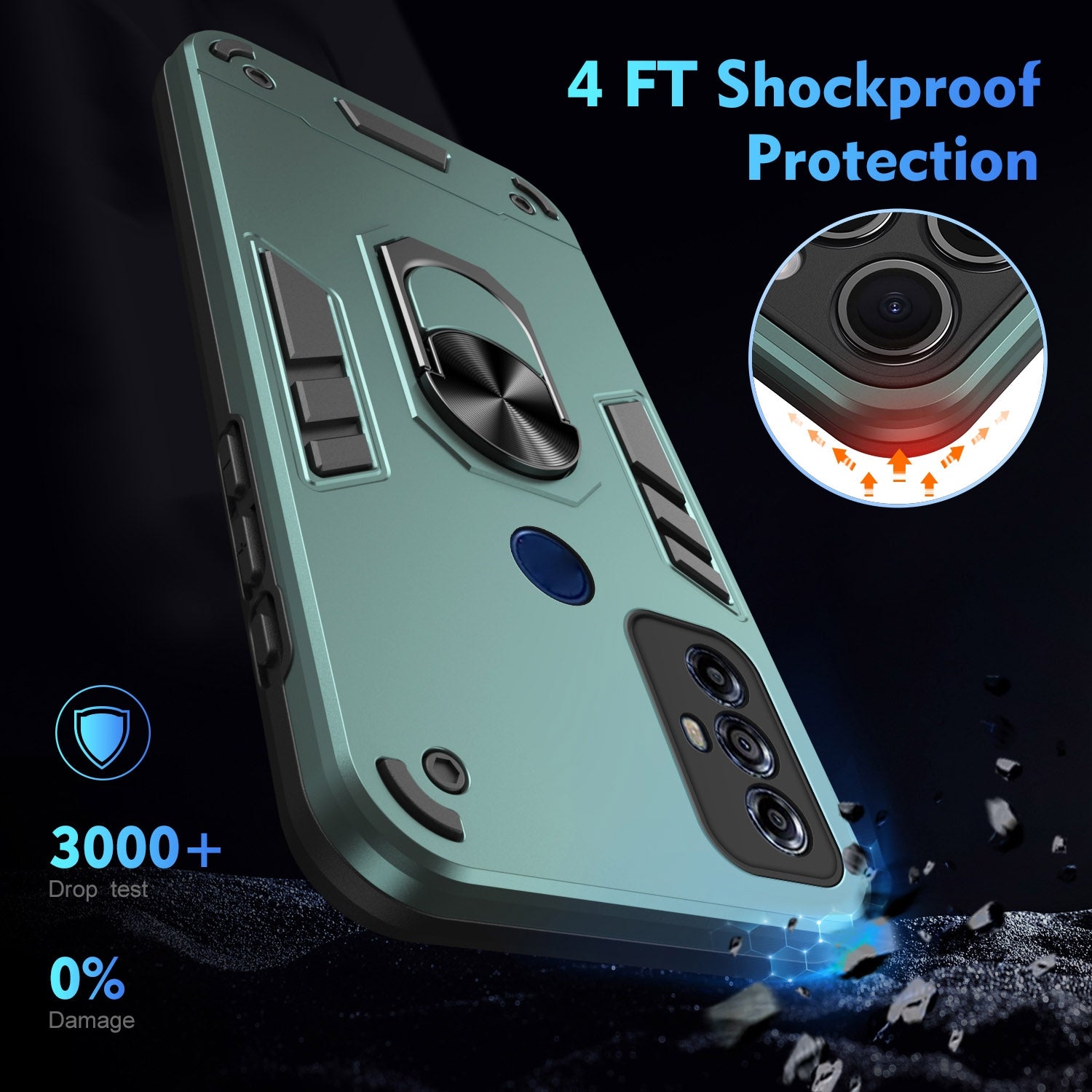 Shockproof Motorola Moto G Play 2023 Phone Case with 360° Rotatable Metal Ring Holder, Magnetic Car Mount Stand, Ultra-Thin PC & Silicone Protection Cover