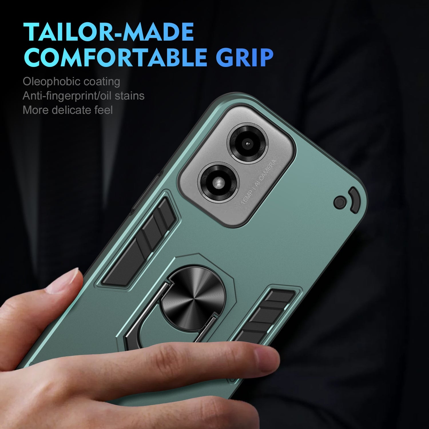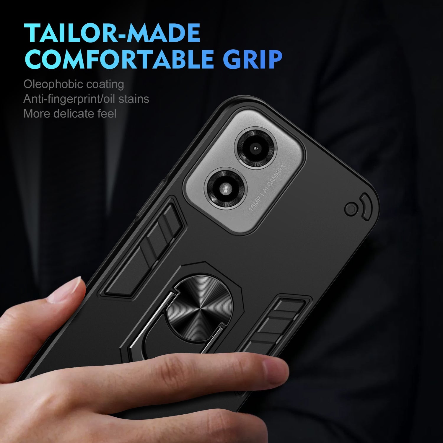 Shockproof Motorola Moto G04 Phone Case with 360° Rotatable Metal Ring Holder, Magnetic Car Mount Stand, Ultra-Thin PC & Silicone Protection Cover