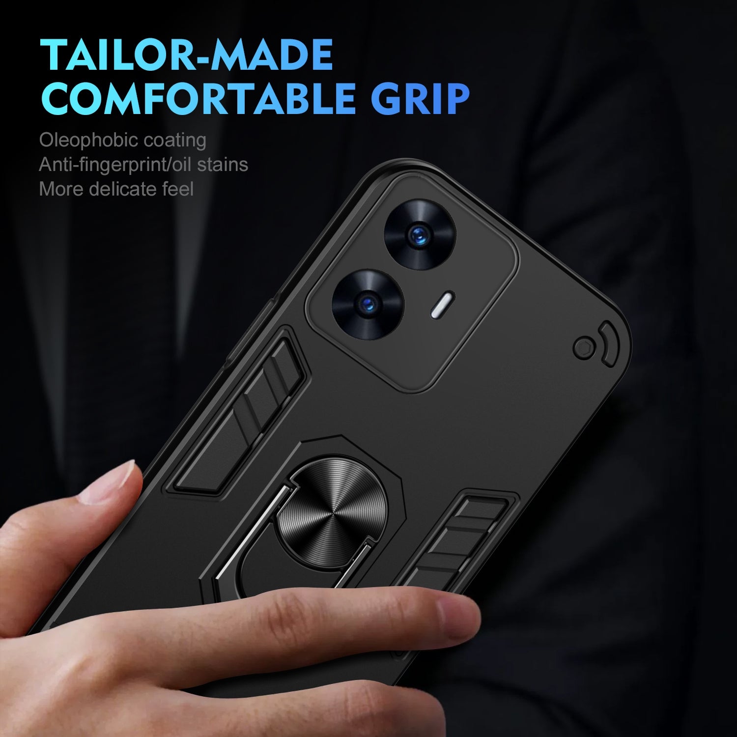 Shockproof Realme C55 Phone Case with 360° Rotatable Metal Ring Holder, Magnetic Car Mount Stand, Ultra-Thin PC & Silicone Protection Cover