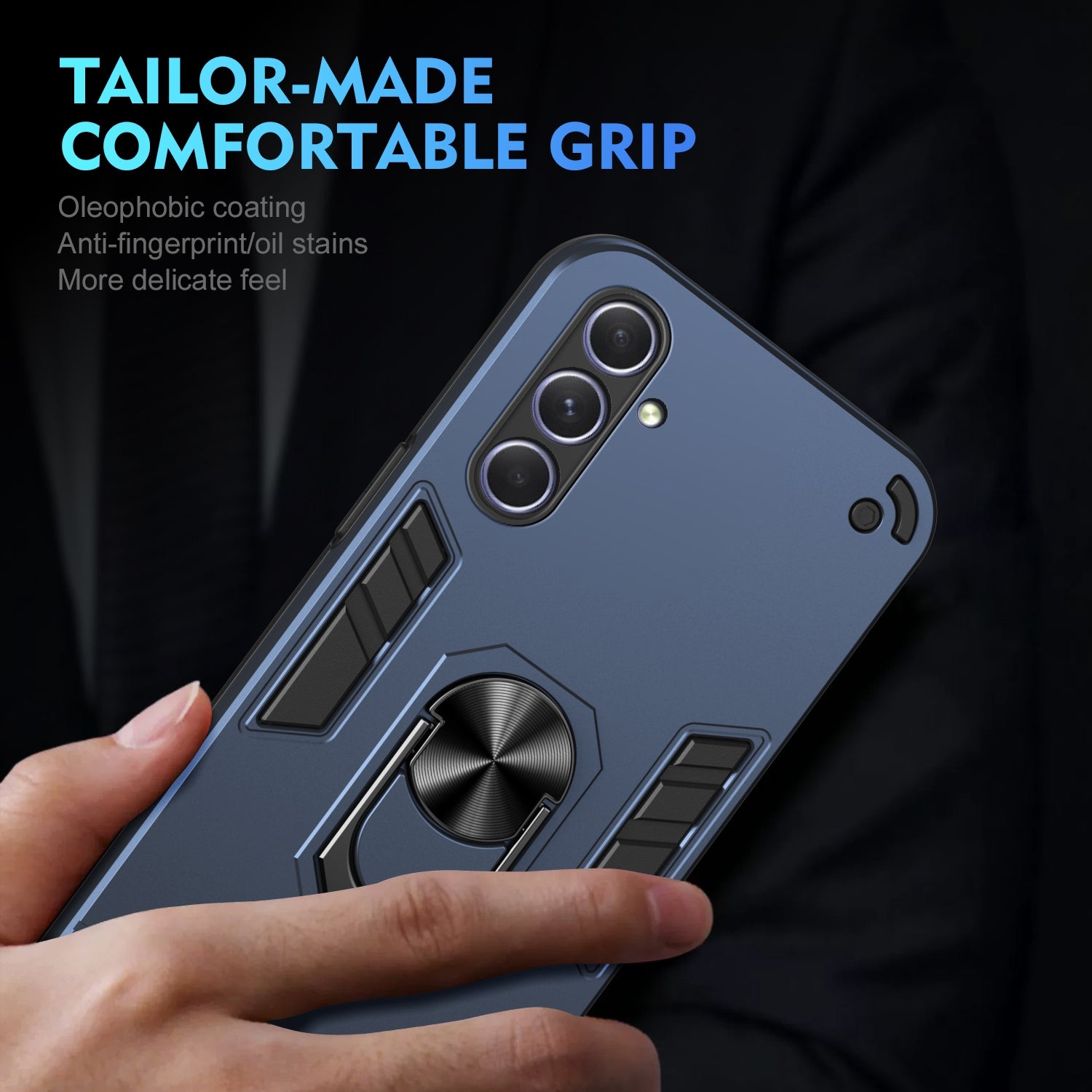 Shockproof Samsung Galaxy A55 Phone Case with 360° Rotatable Metal Ring Holder, Magnetic Car Mount Stand, Ultra-Thin PC & Silicone Protection Cover