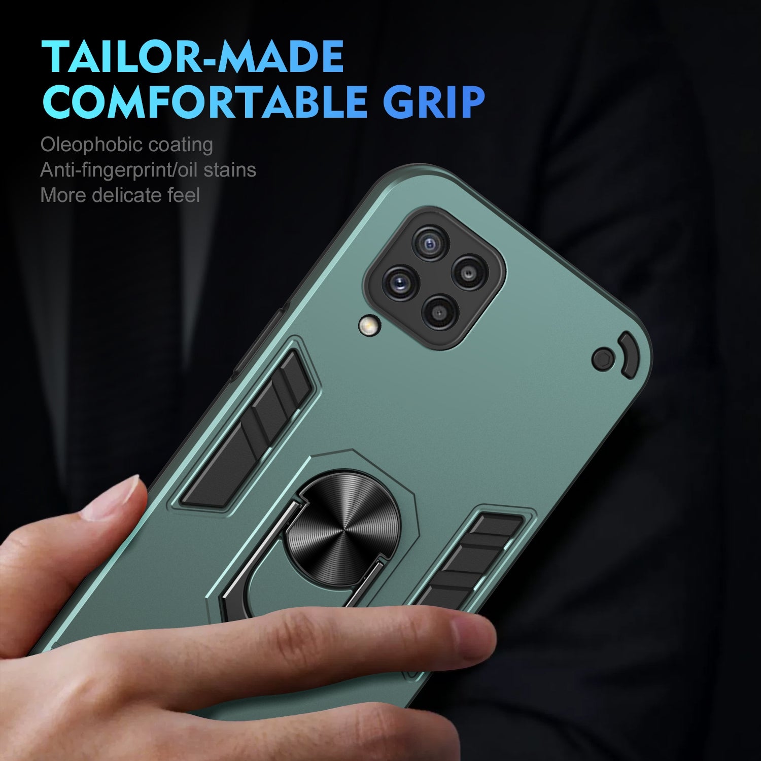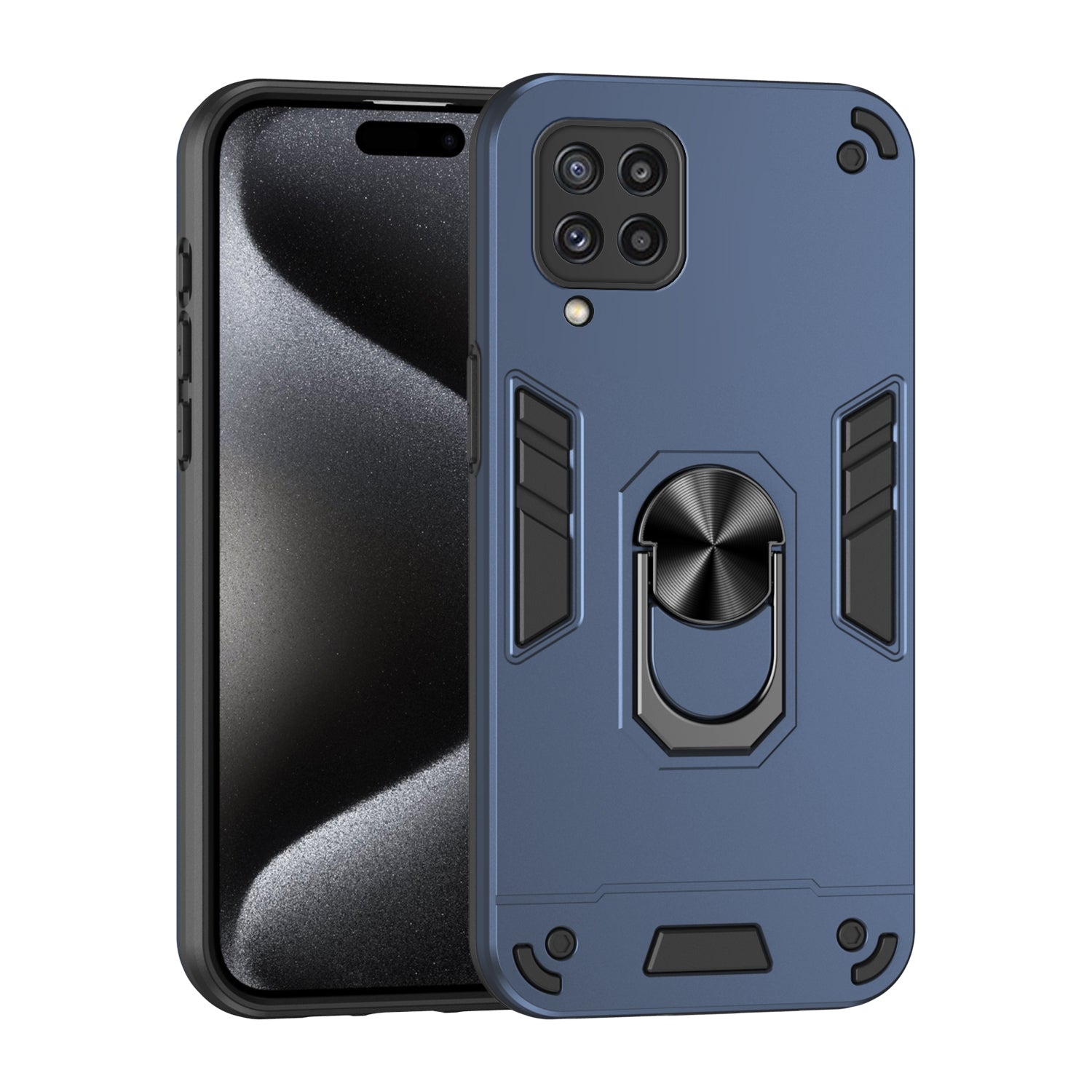Shockproof Samsung Galaxy M32 Phone Case with 360° Rotatable Metal Ring Holder, Magnetic Car Mount Stand, Ultra-Thin PC & Silicone Protection Cover