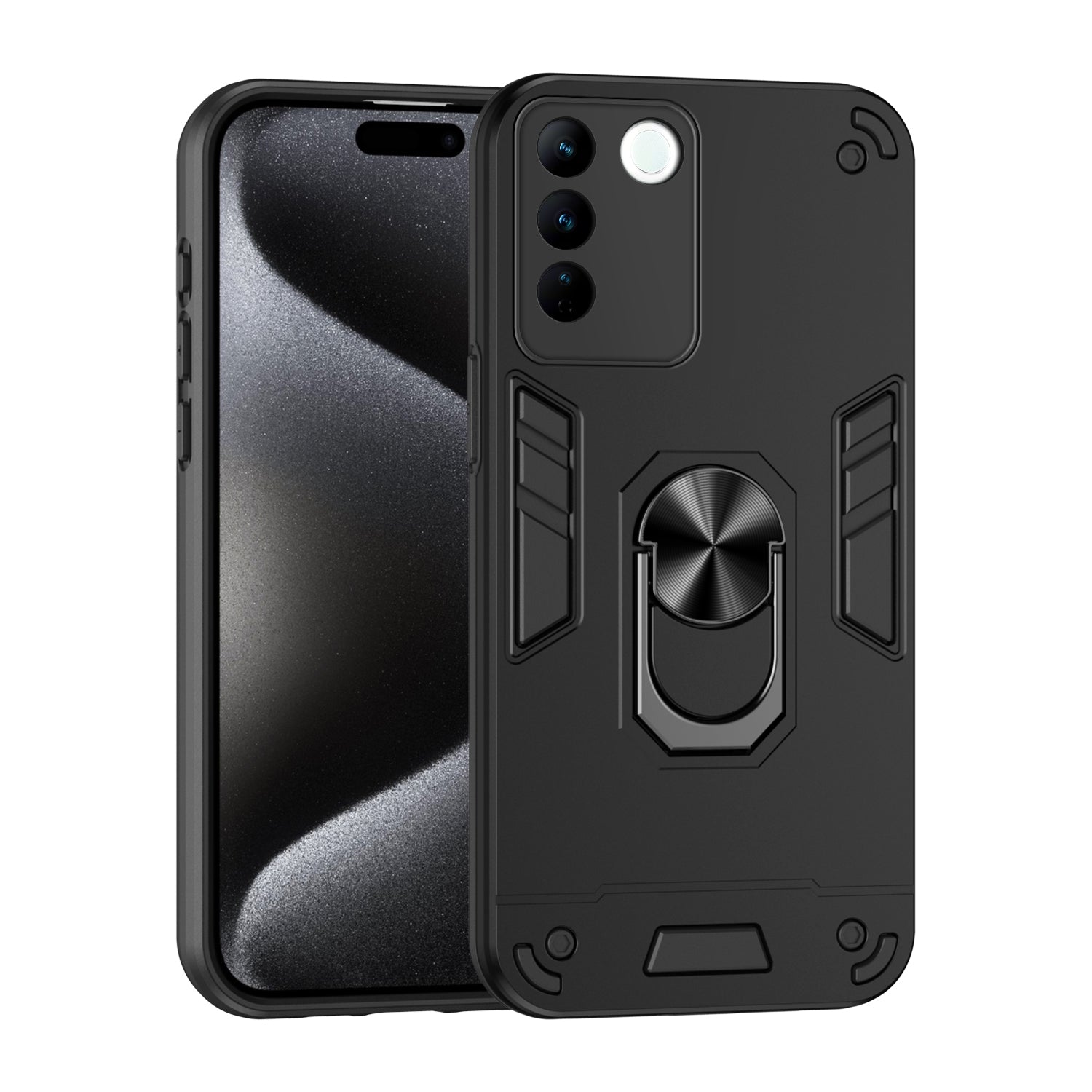 Shockproof vivo V27 Phone Case with 360° Rotatable Metal Ring Holder, Magnetic Car Mount Stand, Ultra-Thin PC & Silicone Protection Cover