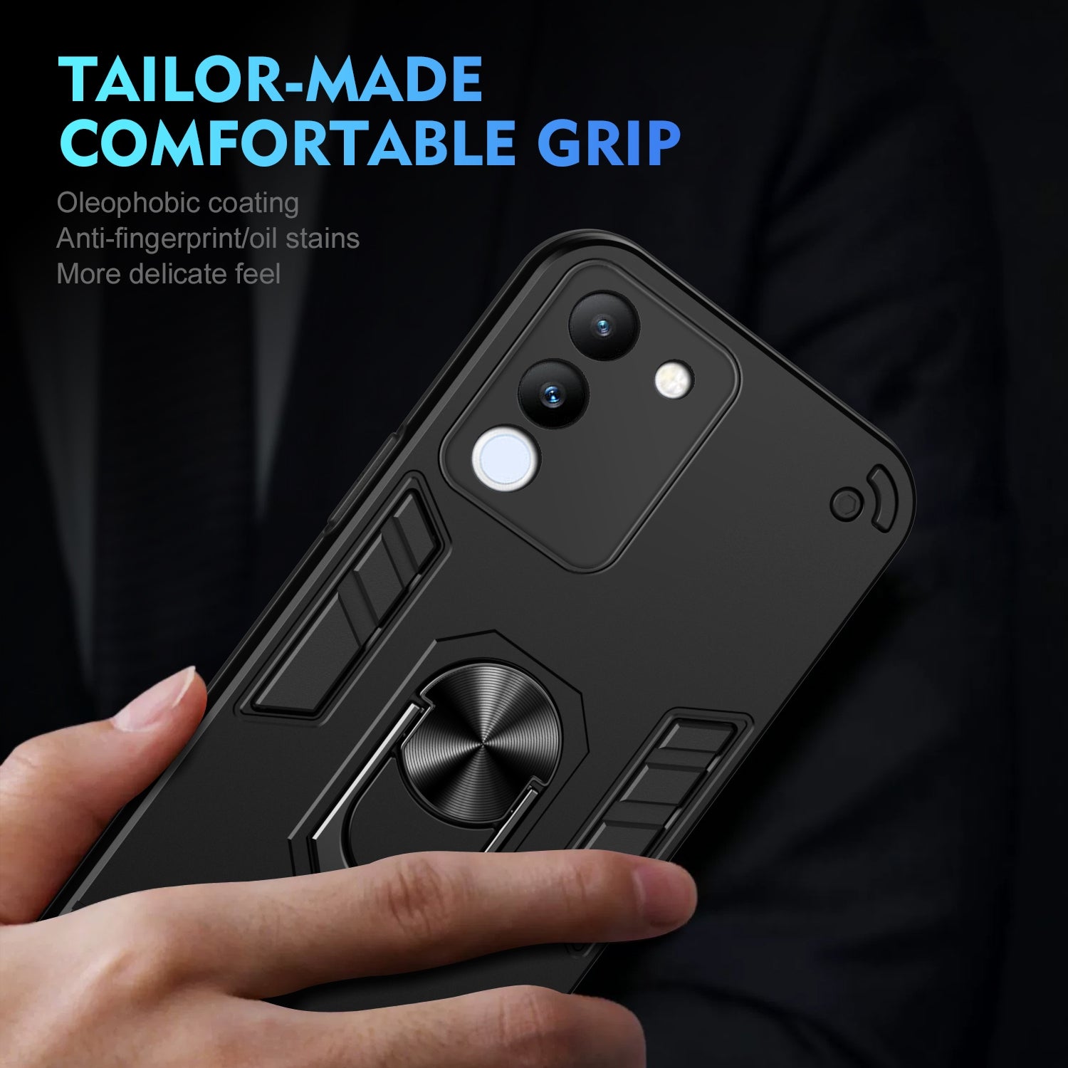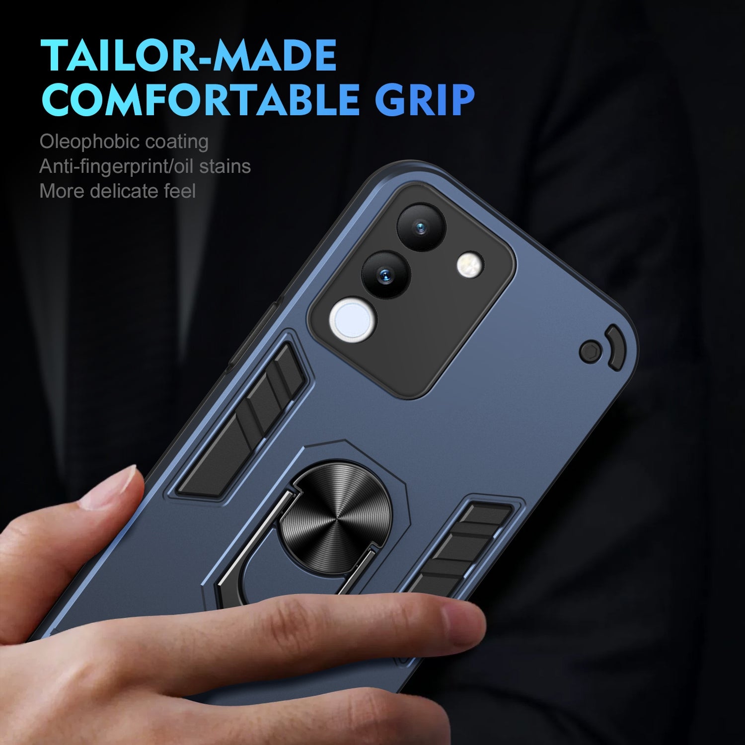 Shockproof vivo V29e 5G Phone Case with 360° Rotatable Metal Ring Holder, Magnetic Car Mount Stand, Ultra-Thin PC & Silicone Protection Cover