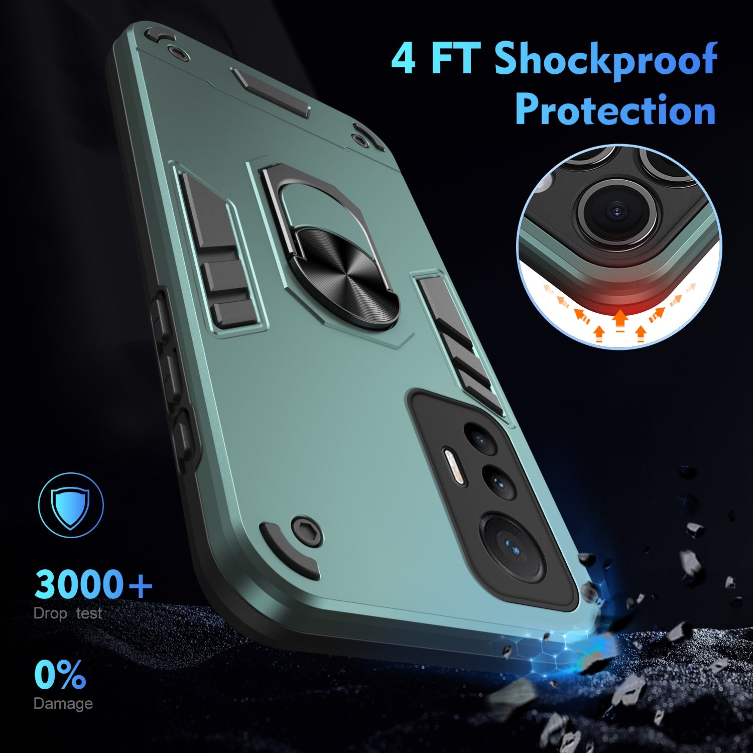 Shockproof Xiaomi 12 Lite Phone Case with 360° Rotatable Metal Ring Holder, Magnetic Car Mount Stand, Ultra-Thin PC & Silicone Protection Cover