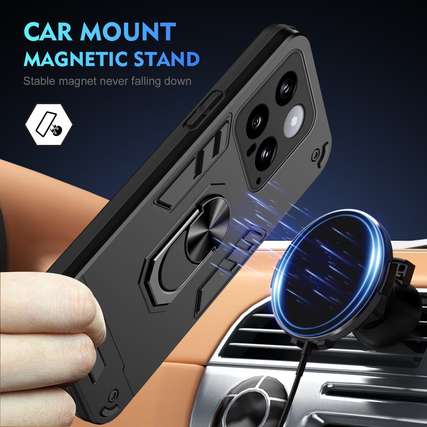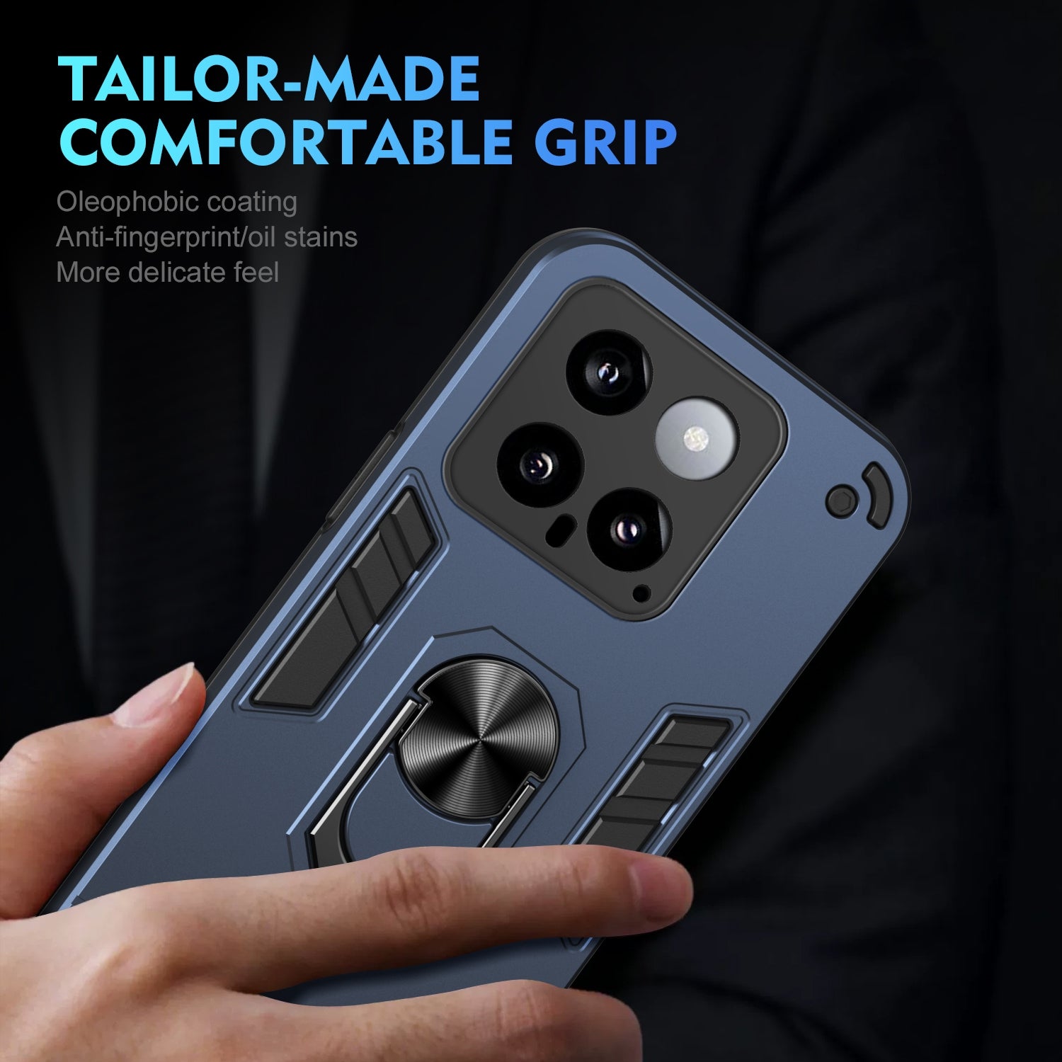 Shockproof Xiaomi 14 Phone Case with 360° Rotatable Metal Ring Holder, Magnetic Car Mount Stand, Ultra-Thin PC & Silicone Protection Cover