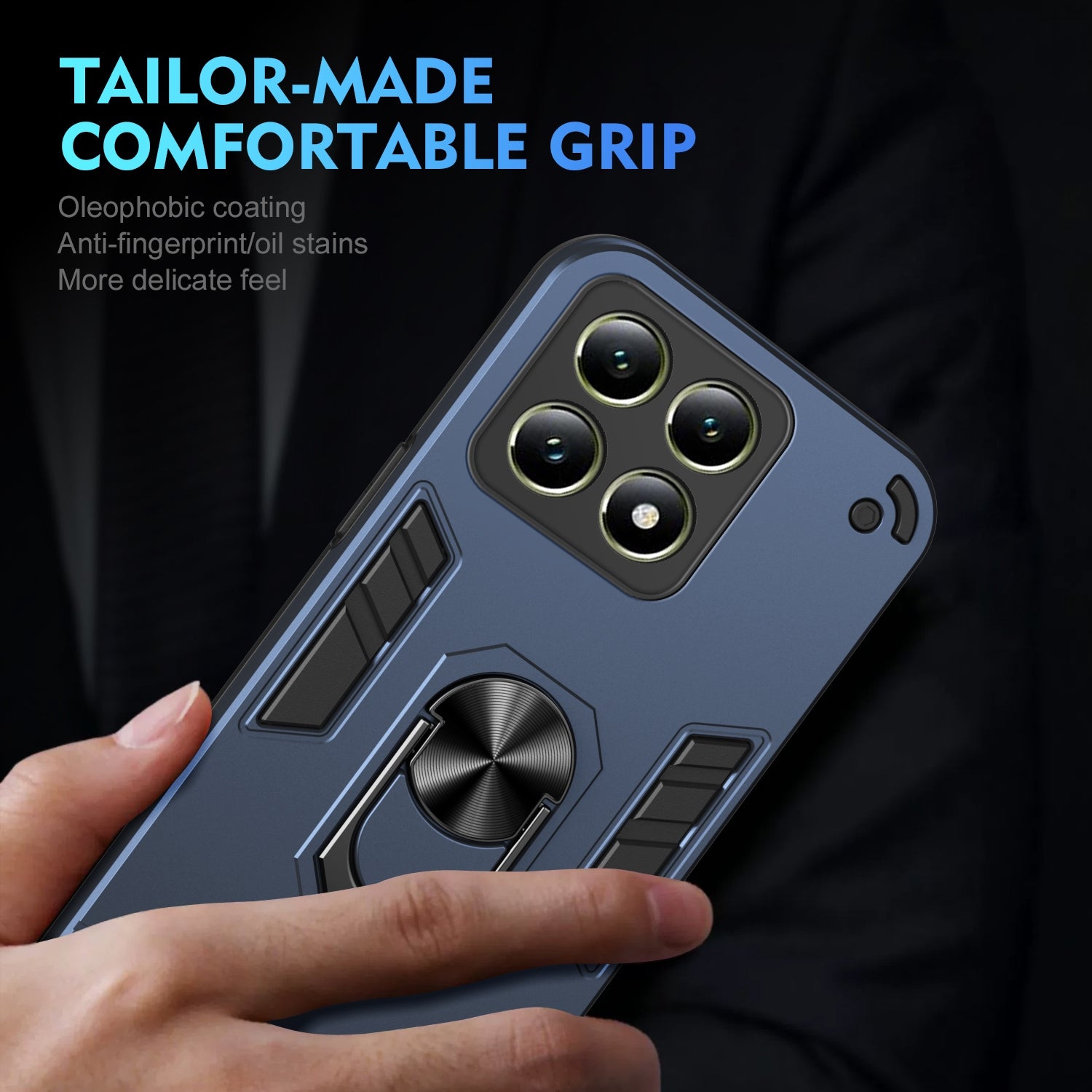 Shockproof Xiaomi 14T Phone Case with 360° Rotatable Metal Ring Holder, Magnetic Car Mount Stand, Ultra-Thin PC & Silicone Protection Cover