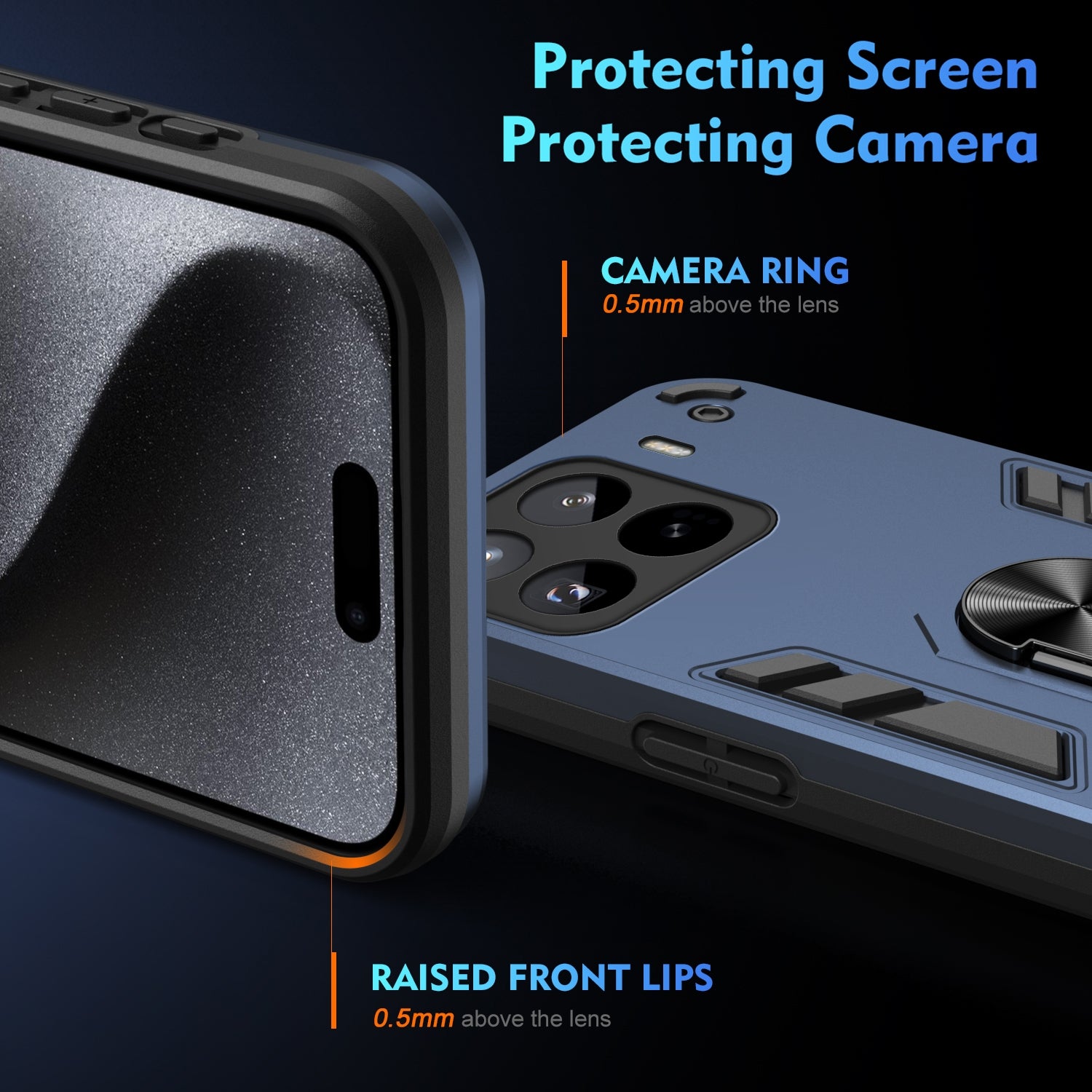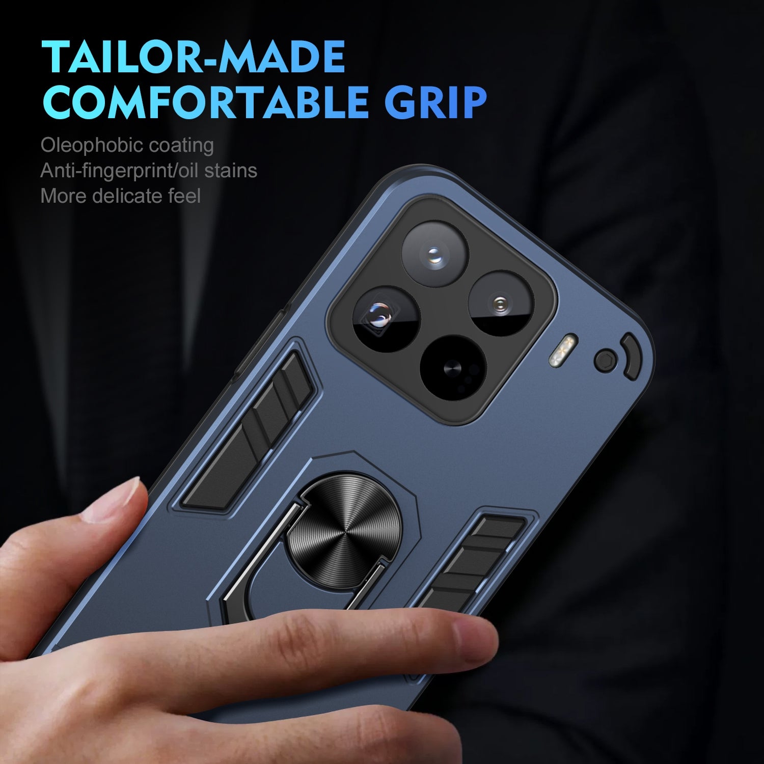 Shockproof Xiaomi 15 Pro Phone Case with 360° Rotatable Metal Ring Holder, Magnetic Car Mount Stand, Ultra-Thin PC & Silicone Protection Cover