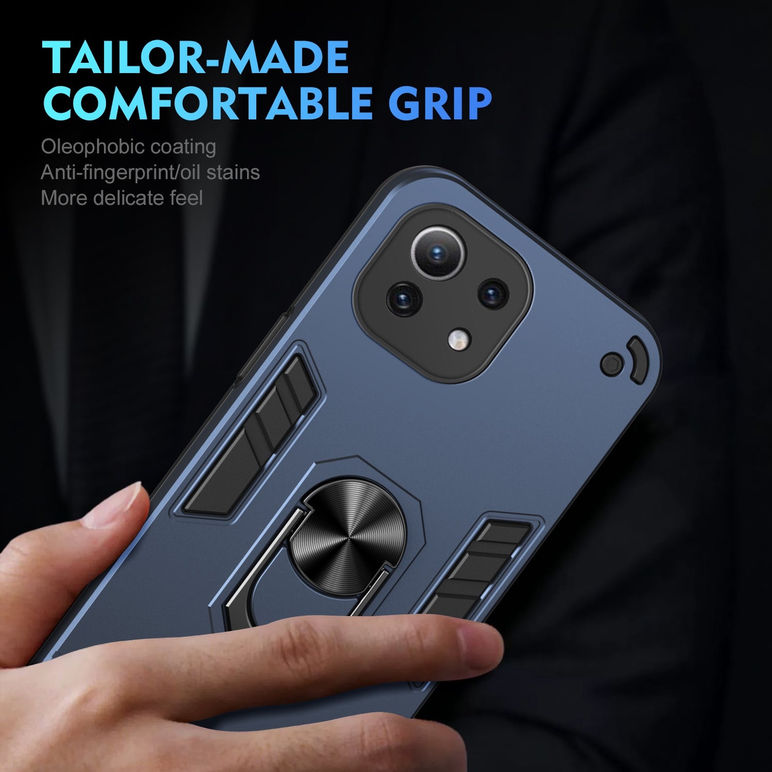 Shockproof Xiaomi Mi 11 Lite Phone Case with 360° Rotatable Metal Ring Holder, Magnetic Car Mount Stand, Ultra-Thin PC & Silicone Protection Cover