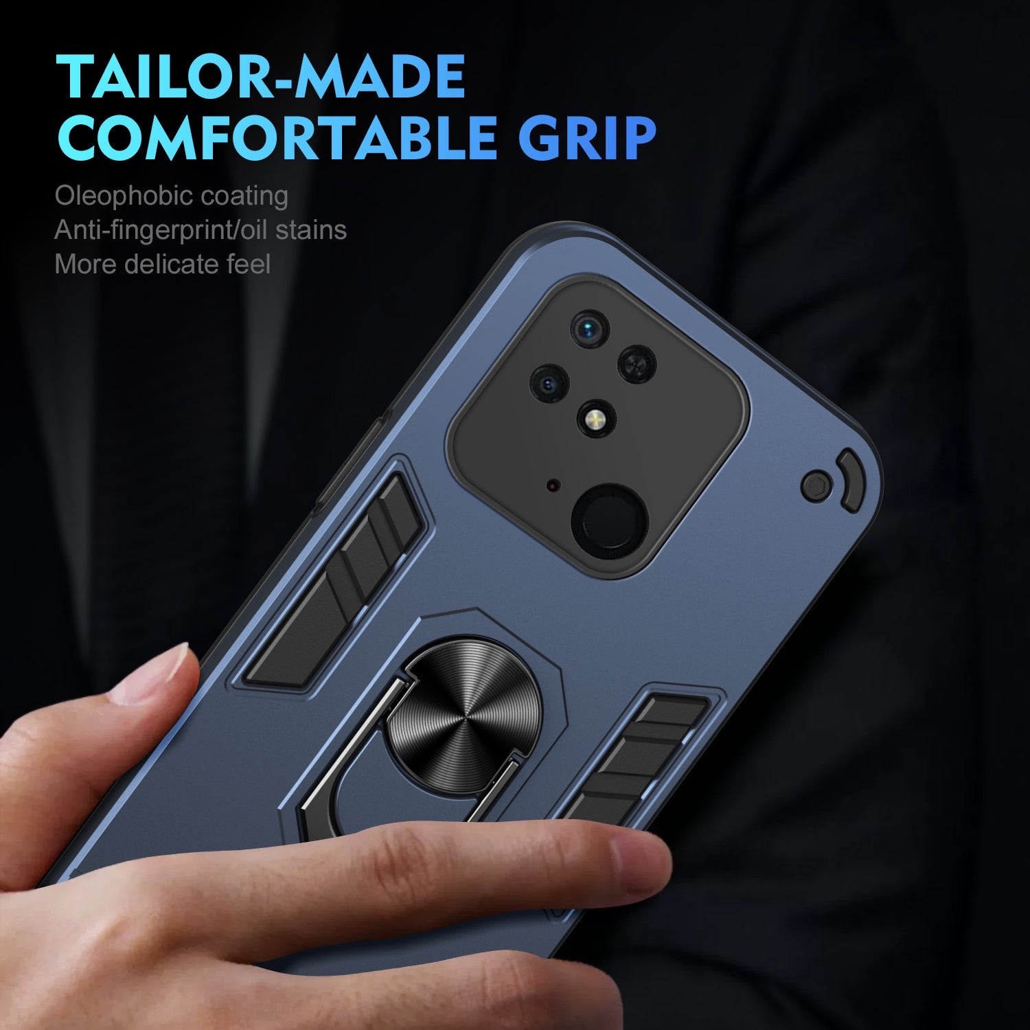 Shockproof Xiaomi Redmi 10C Phone Case with 360° Rotatable Metal Ring Holder, Magnetic Car Mount Stand, Ultra-Thin PC & Silicone Protection Cover