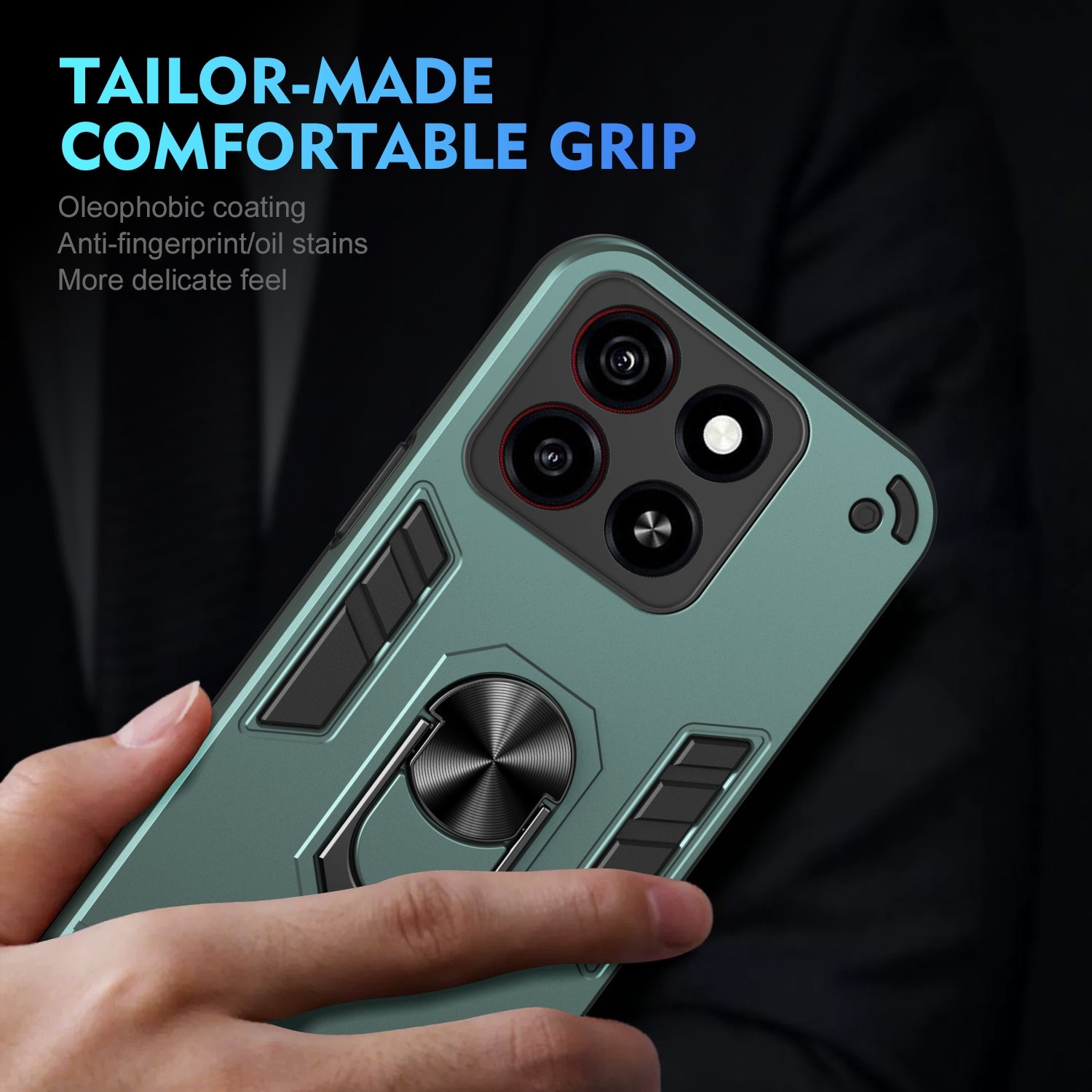 Shockproof ZTE Blade A35 / A55 Phone Case with 360° Rotatable Metal Ring Holder, Magnetic Car Mount Stand, Ultra-Thin PC & Silicone Protection Cover