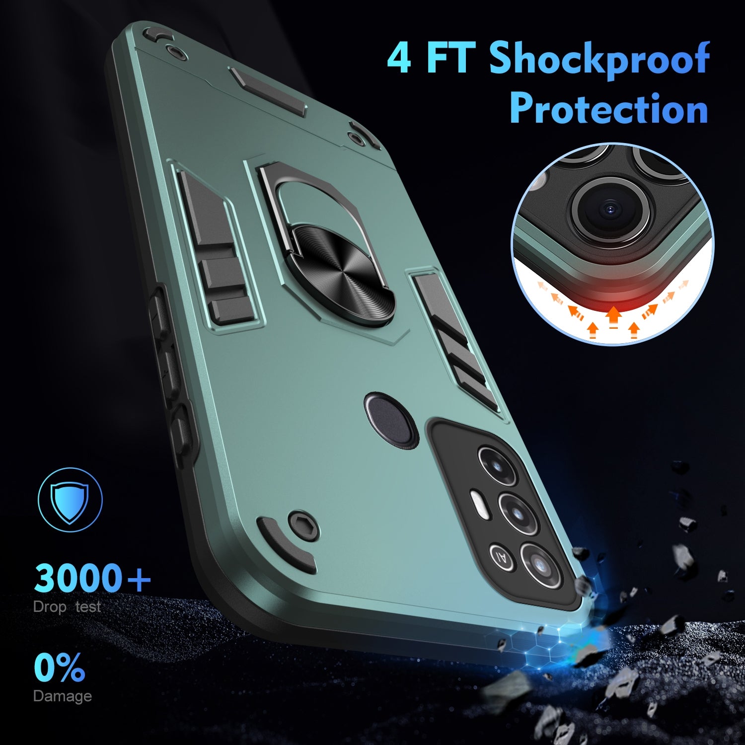 Shockproof ZTE Blade A52 Phone Case with 360° Rotatable Metal Ring Holder, Magnetic Car Mount Stand, Ultra-Thin PC & Silicone Protection Cover