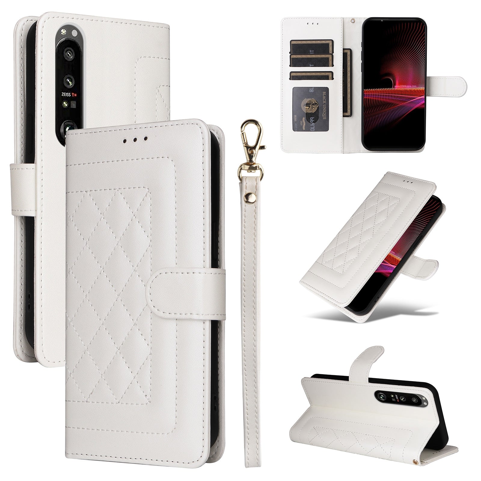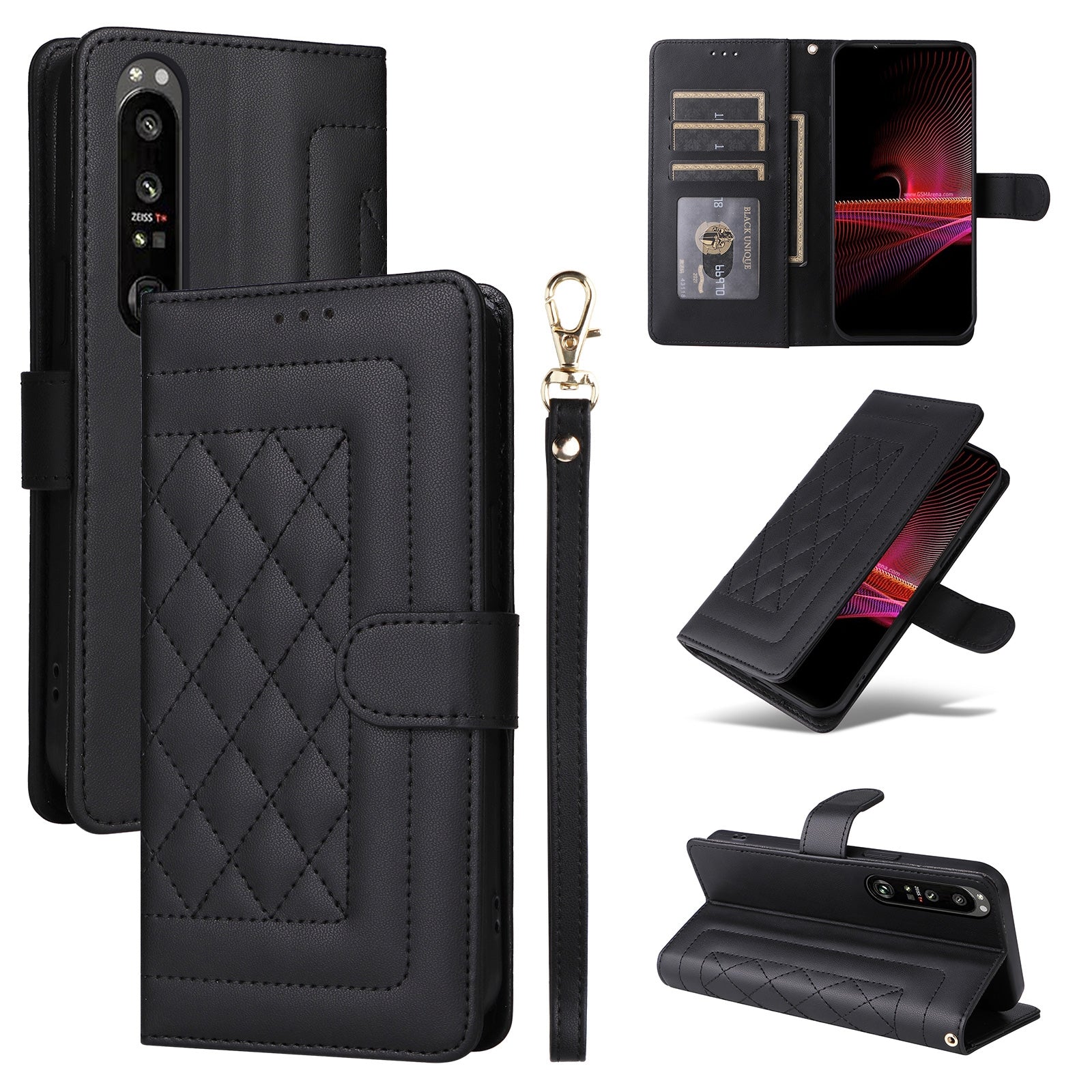 Sony Xperia 1 III Diamond Lattice Leather Flip Phone Case - Durable and Convenient Holder with Precision Cutouts