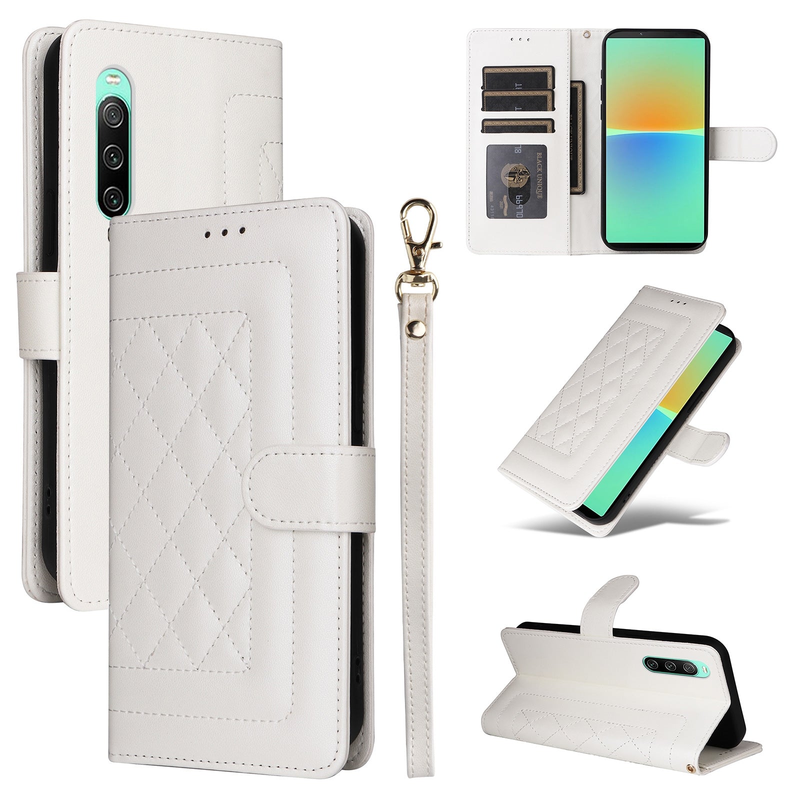 Sony Xperia 10 IV Diamond Lattice Leather Flip Phone Case - Durable and Convenient Holder with Precision Cutouts