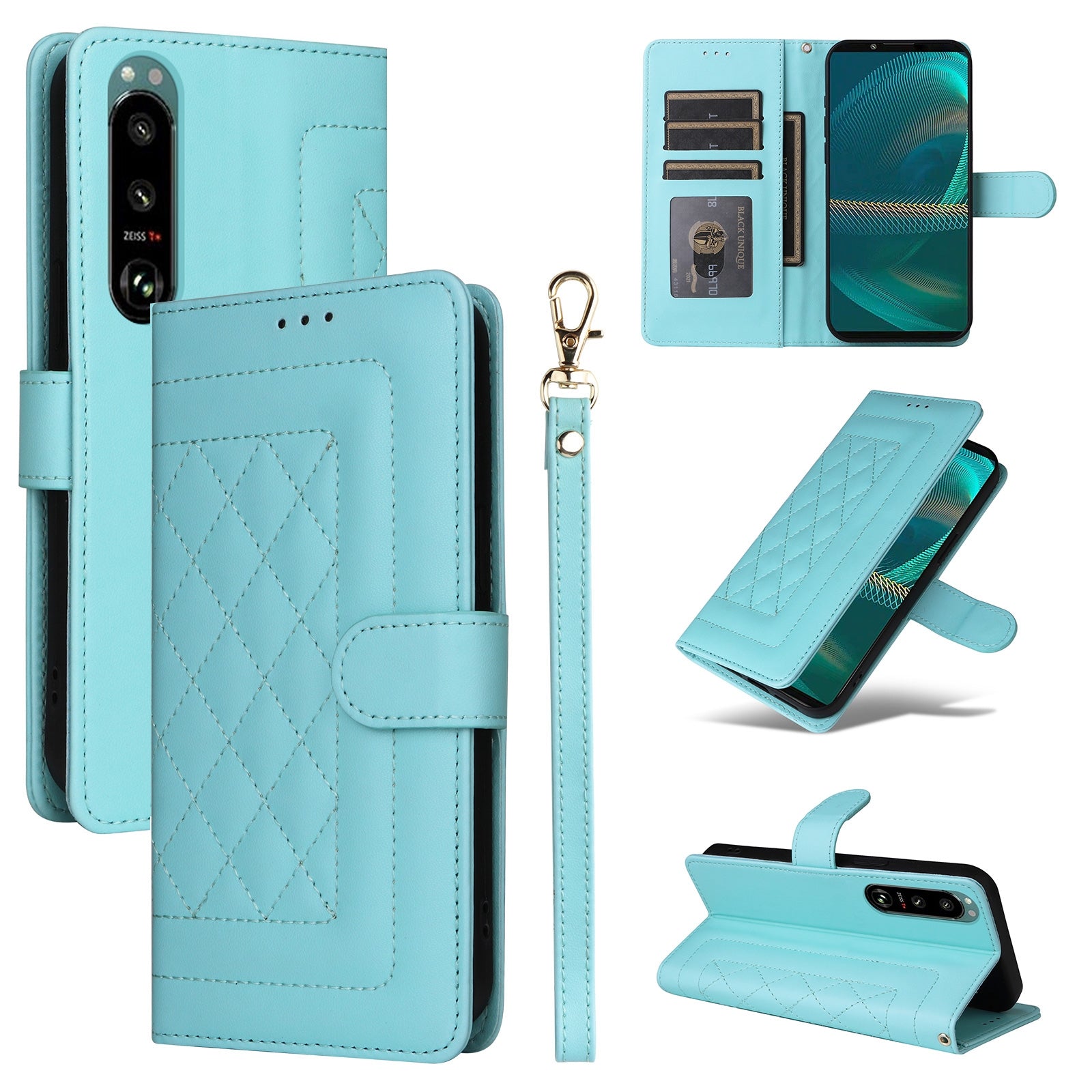 Sony Xperia 5 III Diamond Lattice Leather Flip Phone Case - Durable and Convenient Holder with Precision Cutouts