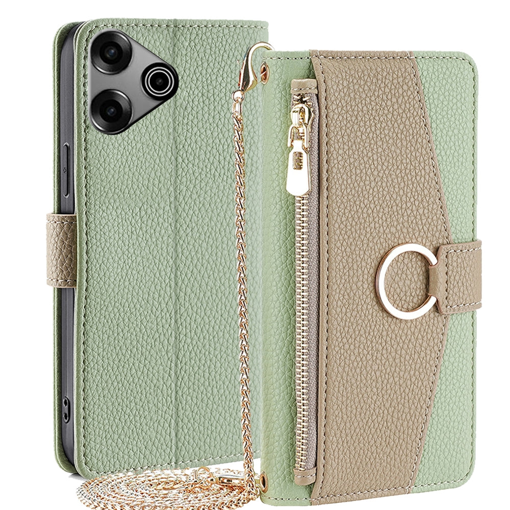 Tecno Pova 6 Pro 5G Crossbody Phone Case with Litchi Texture Leather, Adjustable Kickstand, Card Slots, Zipper Purse, Makeup Mirror, and TPU Protection