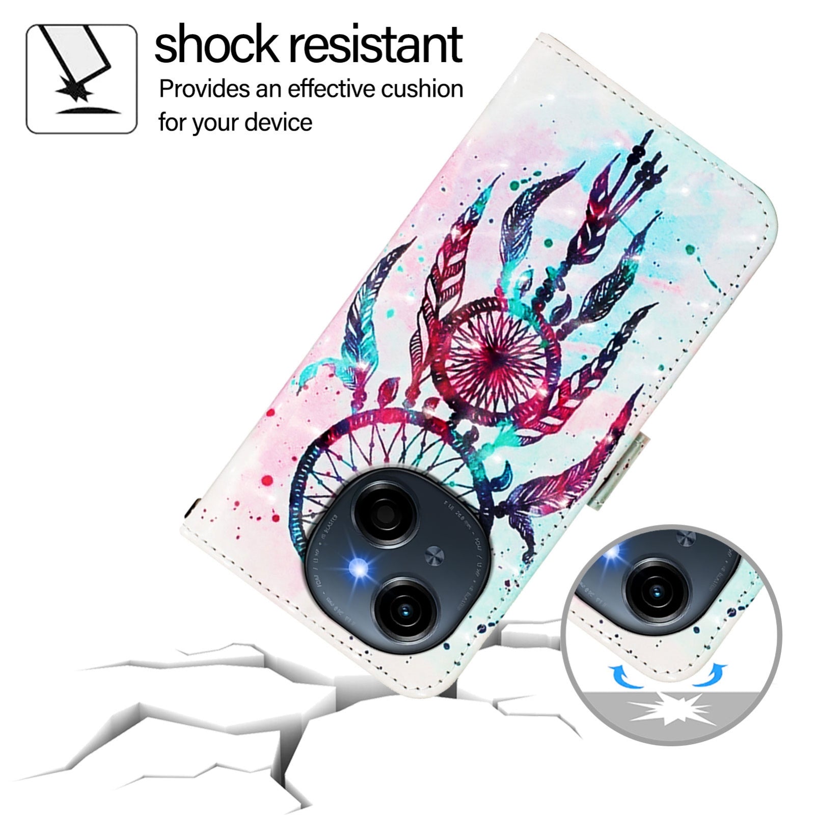 Give your Tecno Spark Go 1 a stylish upgrade with this beautifully designed leather flip phone case featuring eye-catching 3D artwork. Crafted from premium-quality PU leather combined with a robust TPU interior, this case ensures your device stays protected against everyday scratches, dirt, wear, and tear.