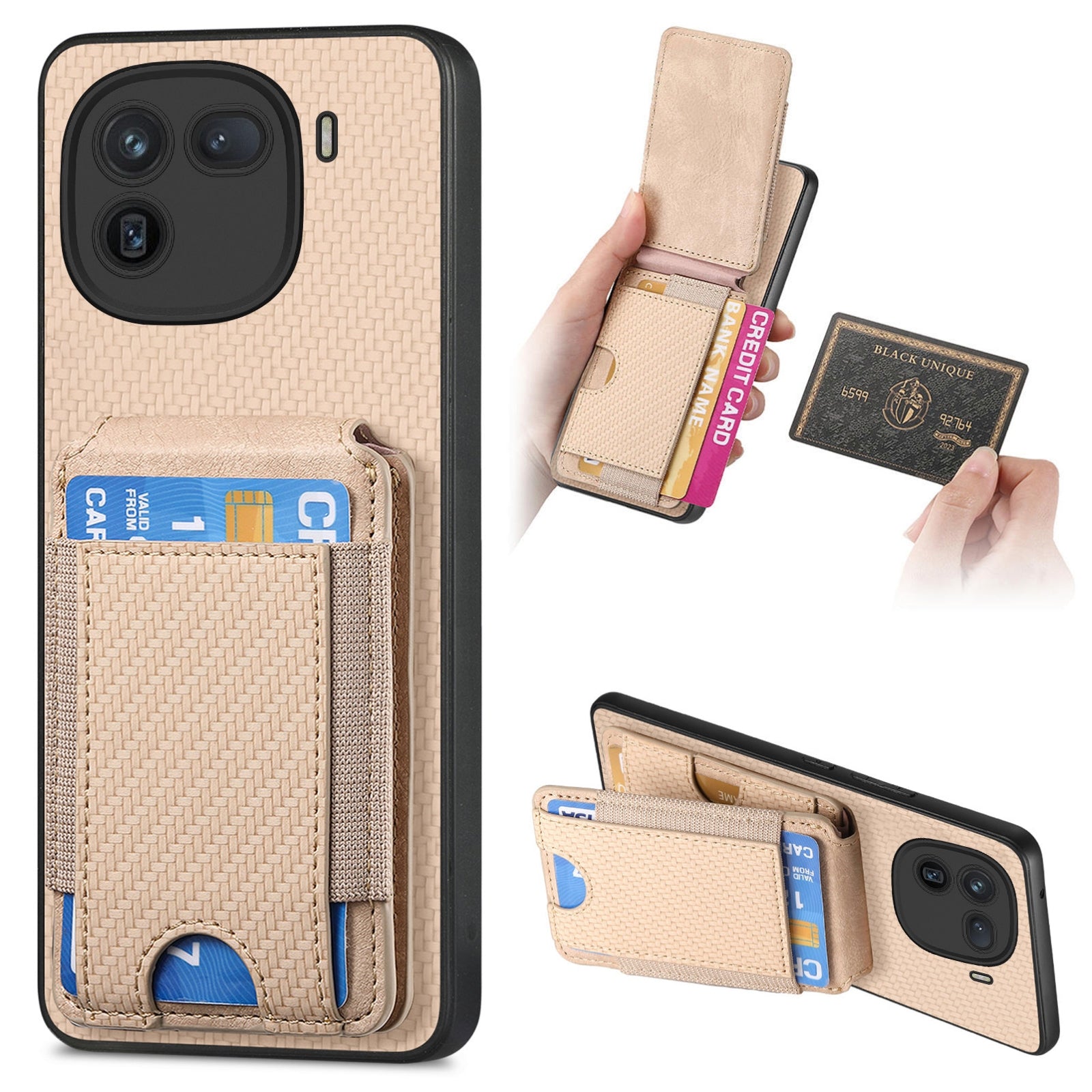 vivo iQOO 12 Pro Vertical Flip Wallet Stand Phone Case with Carbon Fibre Pattern