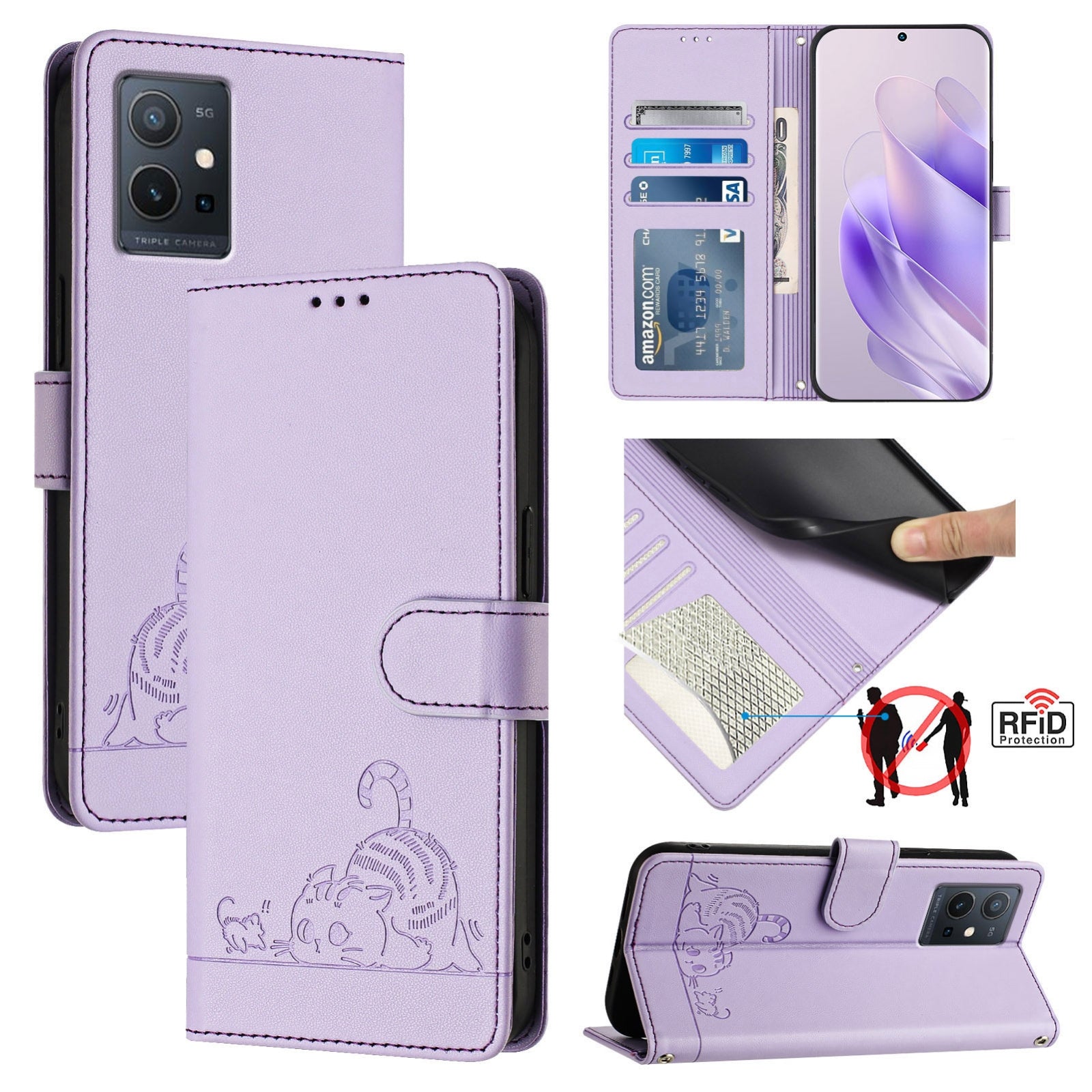 vivo iQOO U5E 5G Cat and Rat Embossed Pattern, RFID Leather Phone Case with Lanyard, Kickstand, and Wallet Features