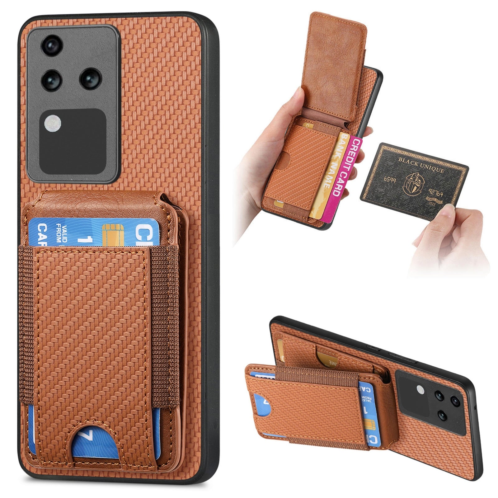vivo S18 Pro Vertical Flip Wallet Stand Phone Case with Carbon Fibre Pattern