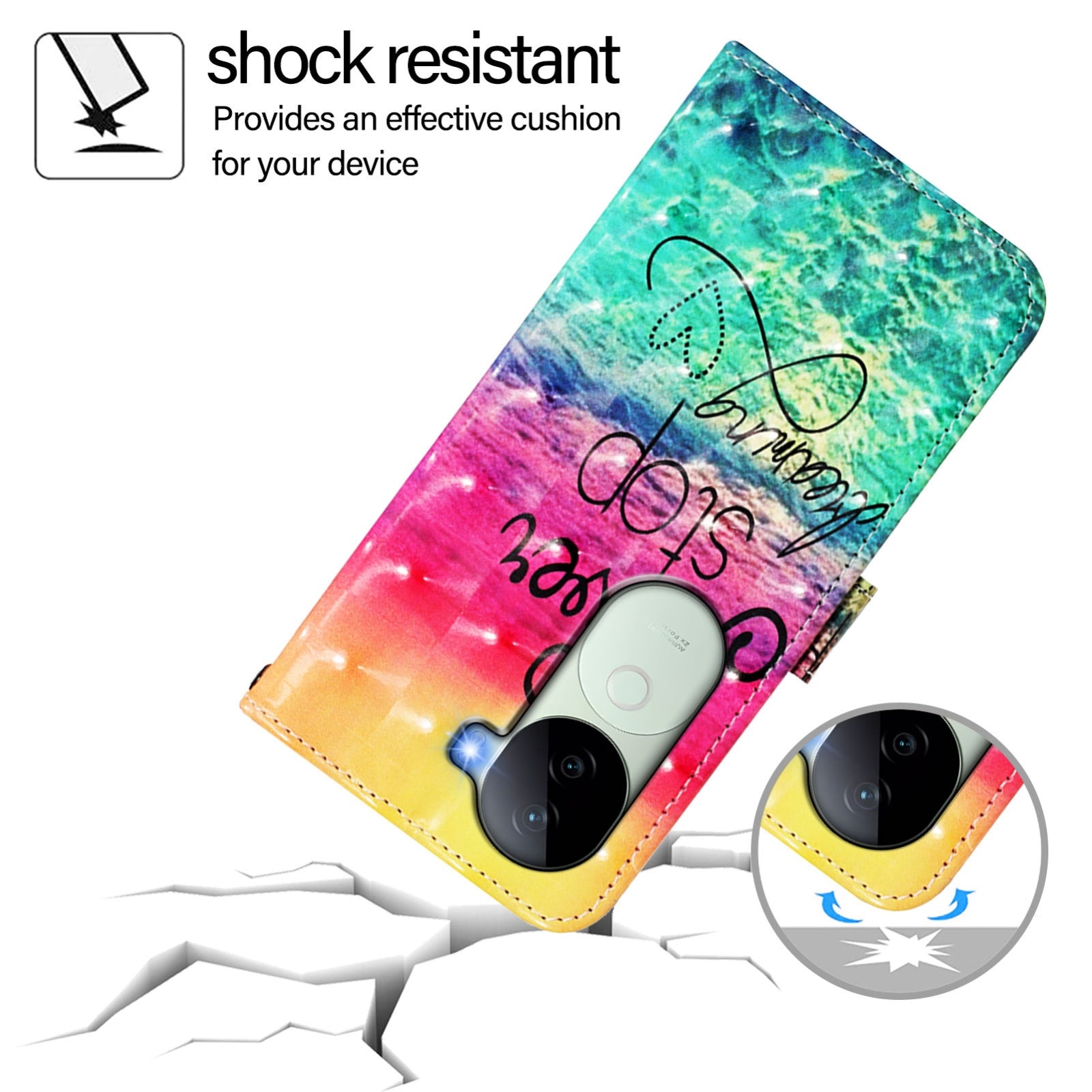 Give your vivo V40e 5G India a stylish upgrade with this beautifully designed leather flip phone case featuring eye-catching 3D artwork. Crafted from premium-quality PU leather combined with a robust TPU interior, this case ensures your device stays protected against everyday scratches, dirt, wear, and tear.
