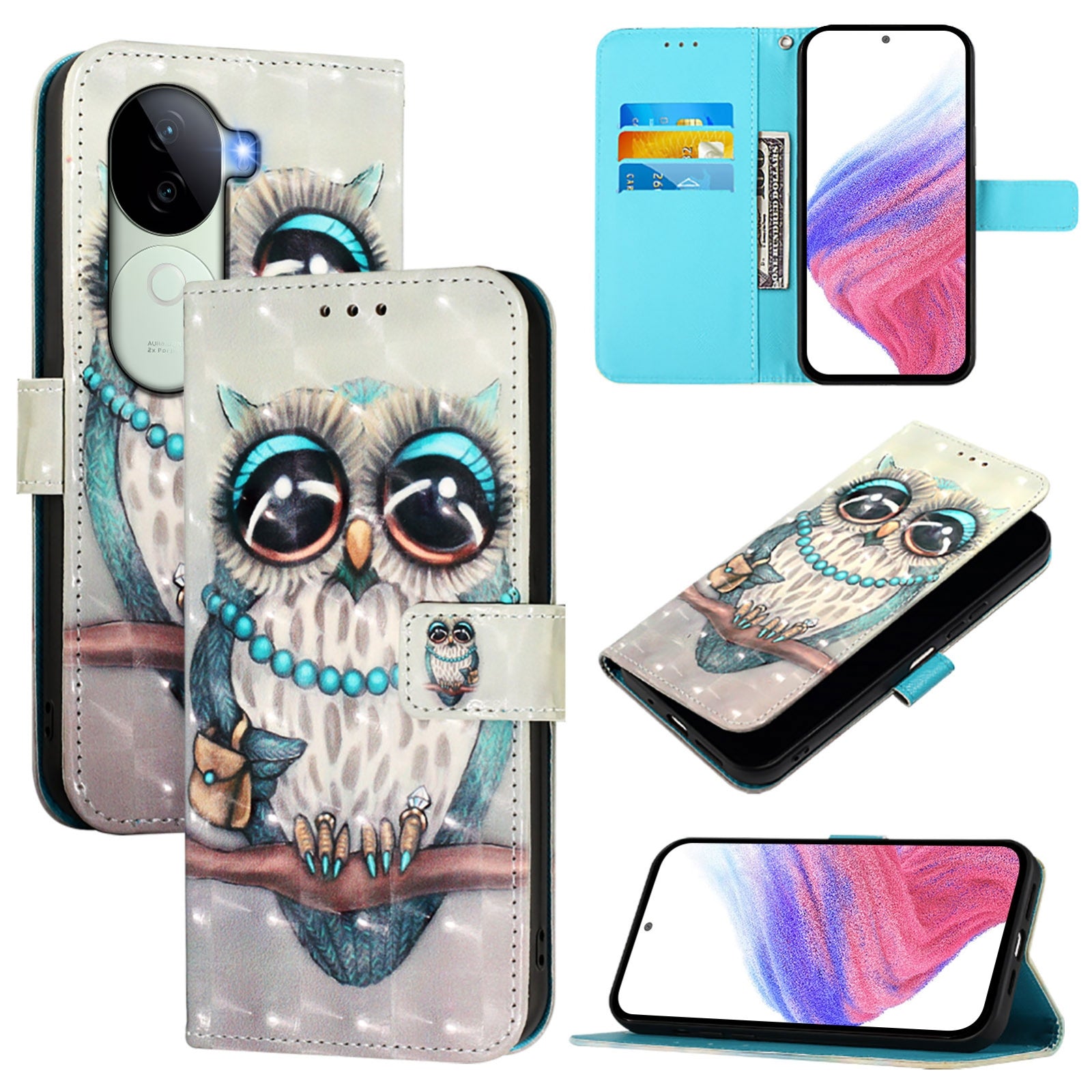 vivo V40e 5G India Leather Flip Phone Case with 3D Painted Design, Card Holder, Wallet & Stand Function - Durable Protection & Easy Access