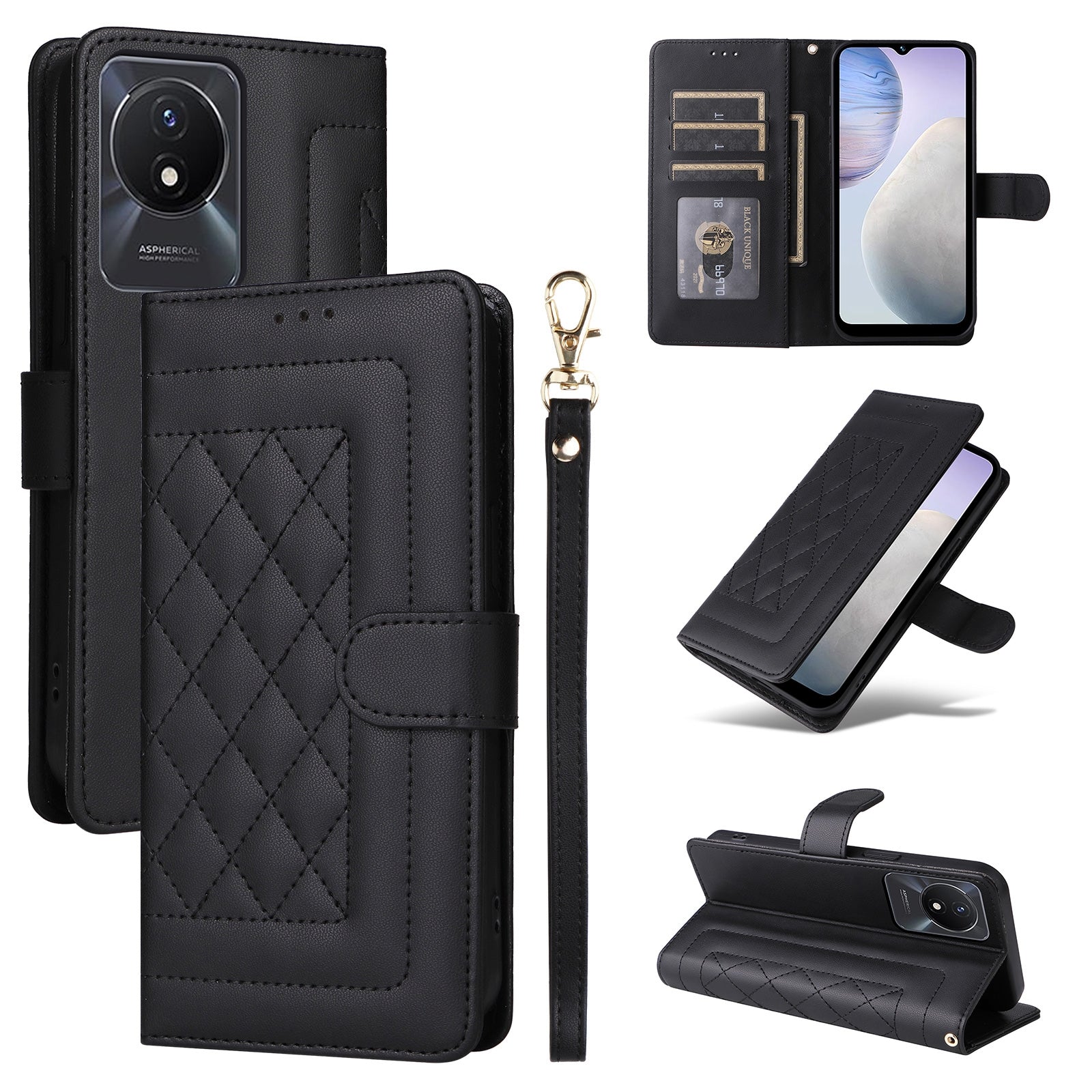 vivo Y02 Diamond Lattice Leather Flip Phone Case - Durable and Convenient Holder with Precision Cutouts