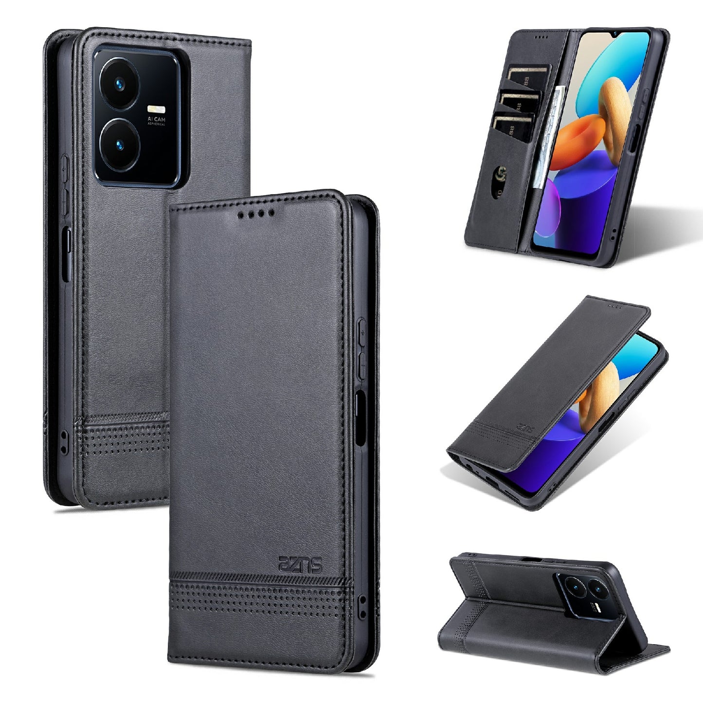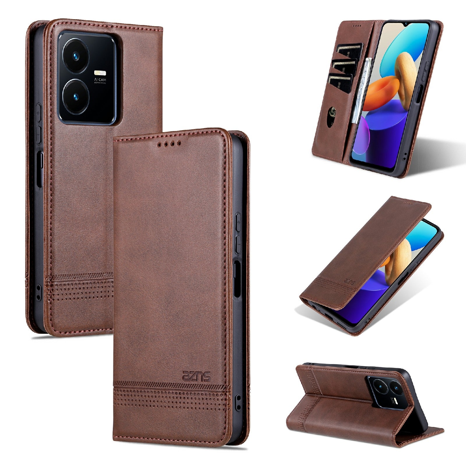Vivo Y22/Y22s/Y35 4G Leather Wallet Case with Card Holder & Magnetic Closure