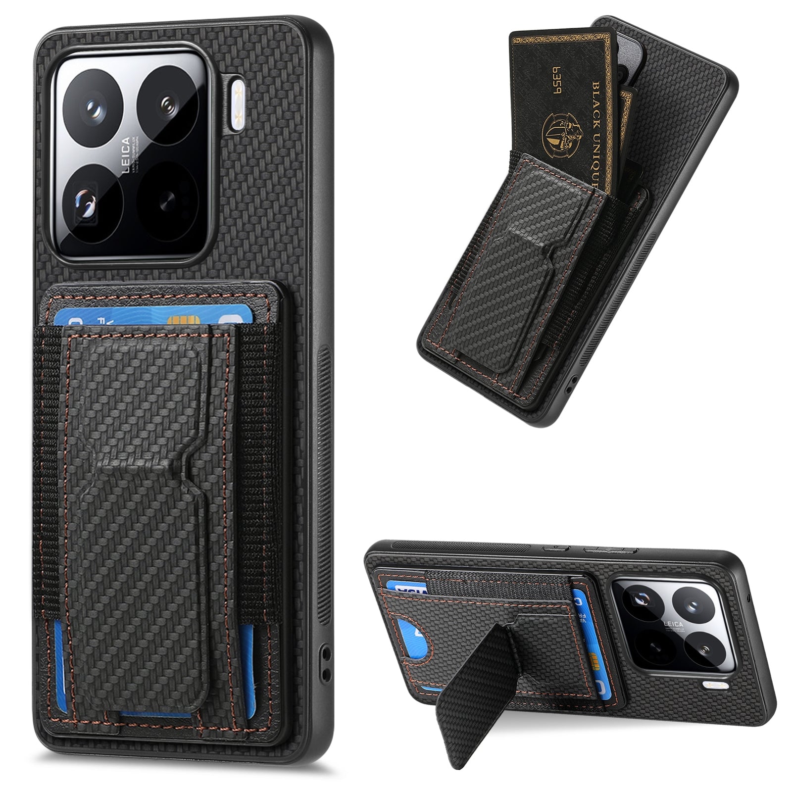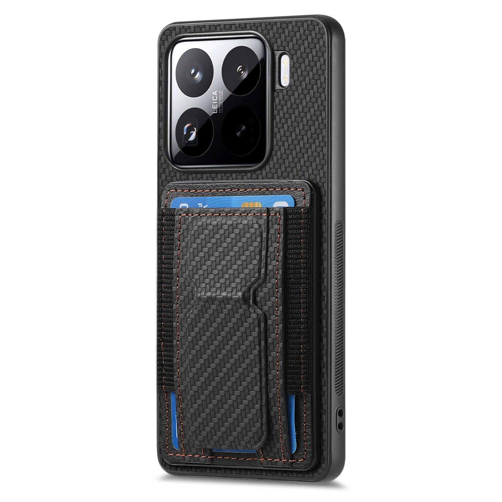Xiaomi 15 Pro Carbon Fiber Fold Stand Elastic Card Bag Phone Case with Multi-Functional Wallet