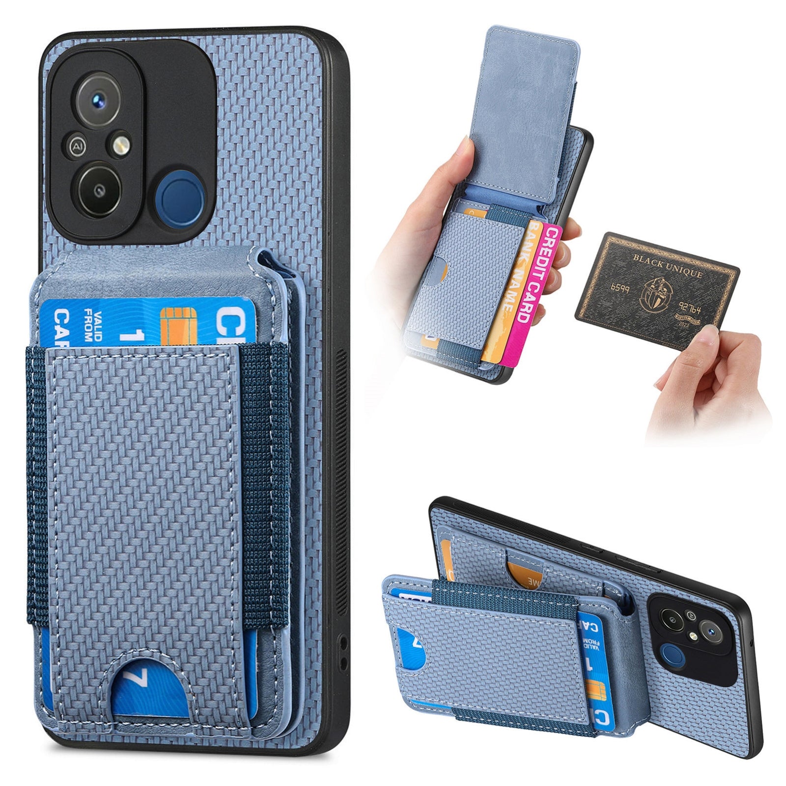 Xiaomi Redmi 12C Vertical Flip Wallet Stand Phone Case with Carbon Fibre Pattern