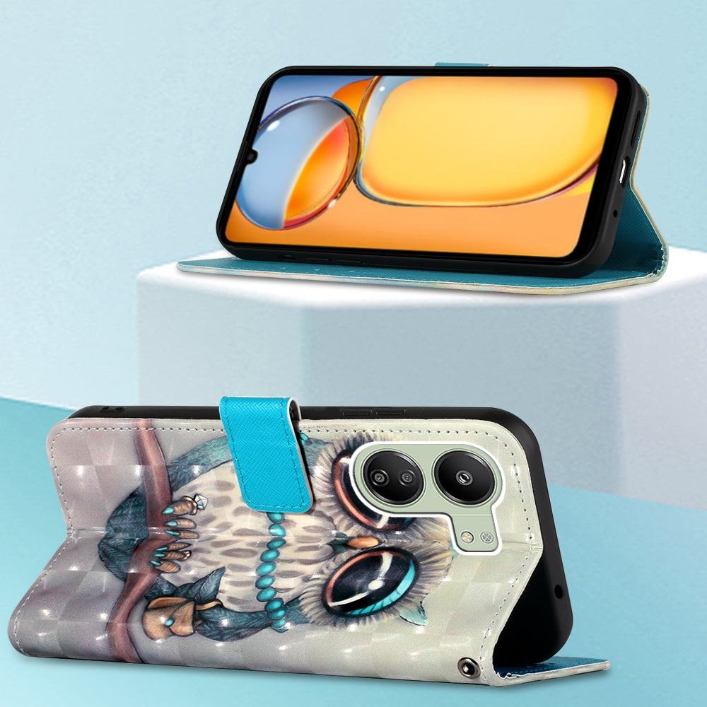 Xiaomi Redmi 13C Leather Flip Phone Case with 3D Painted Design, Card Holder, Wallet & Stand Function - Durable Protection & Easy Access