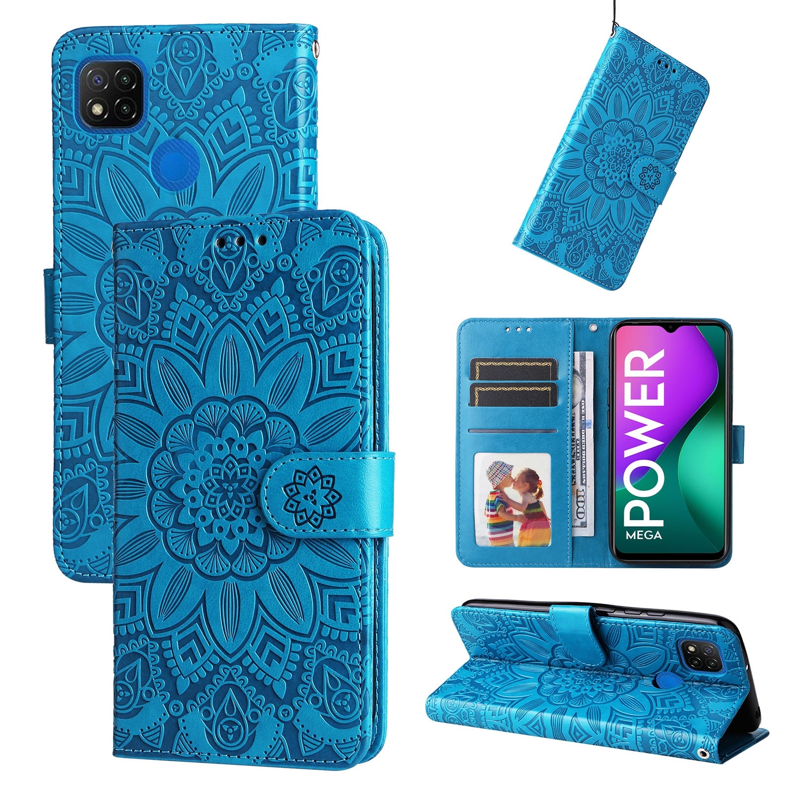 Xiaomi Redmi 9C Sunflower Embossed Leather Wallet Phone Case with Kickstand and Card Holder