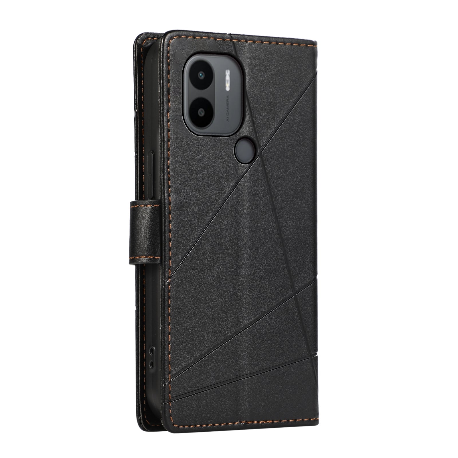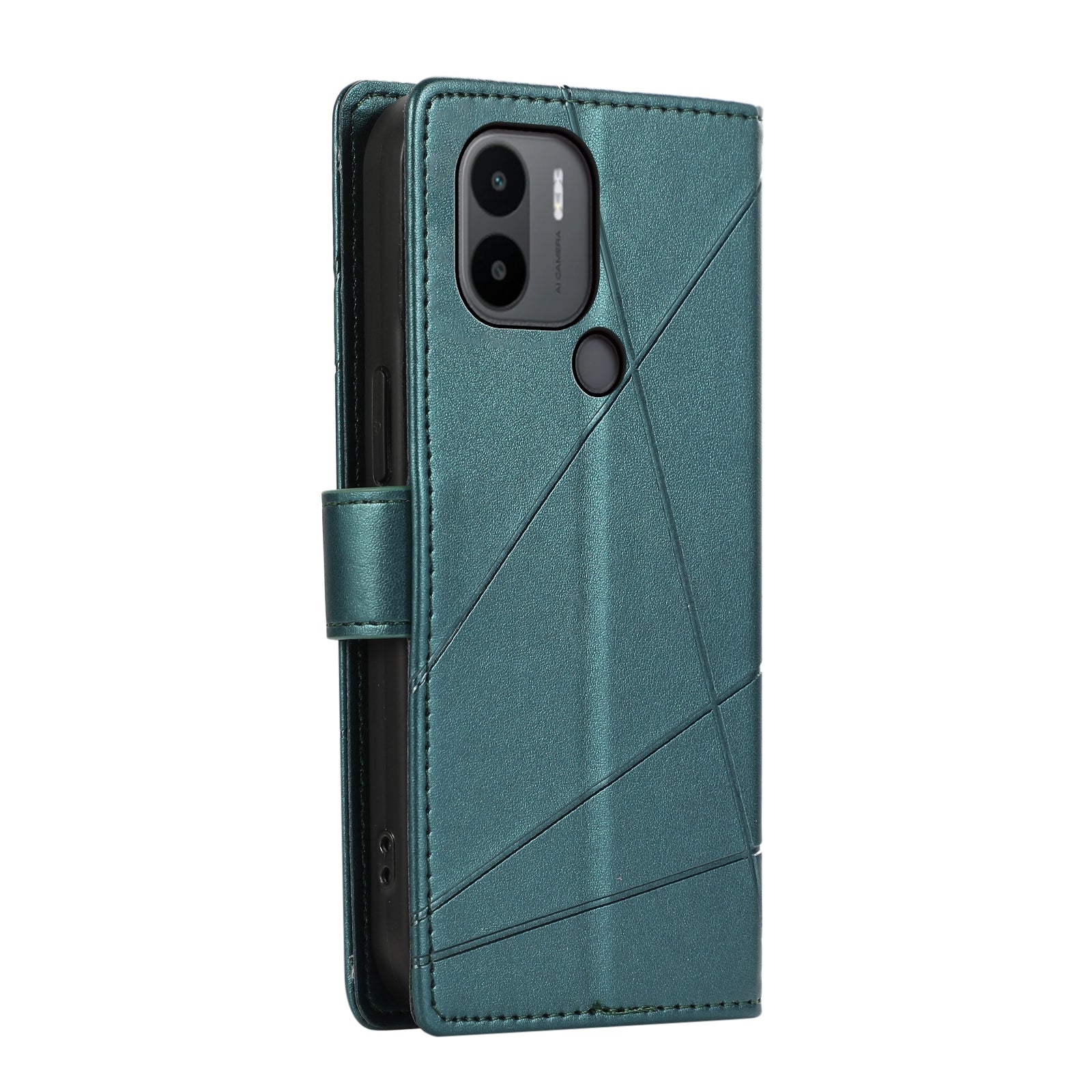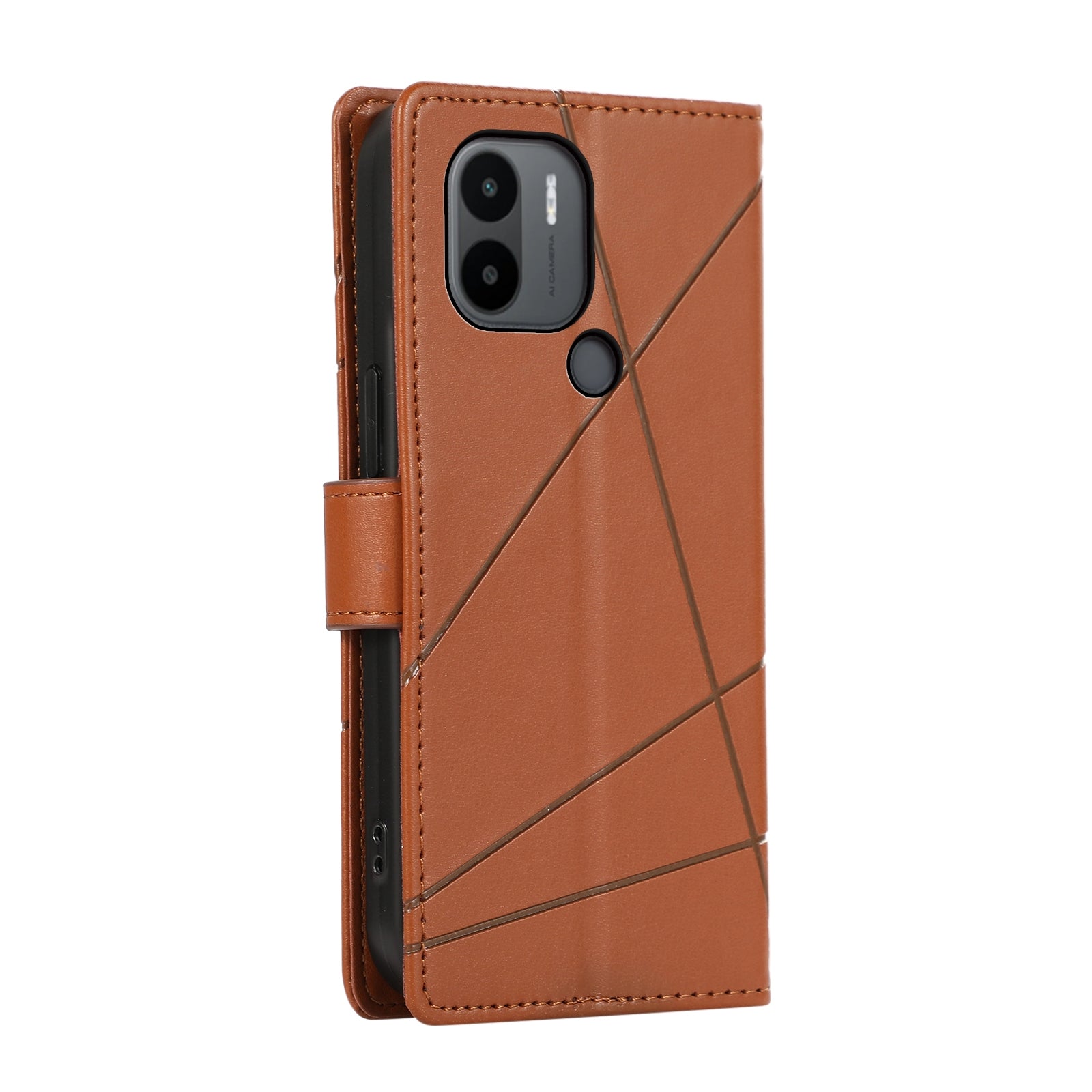 Xiaomi Redmi A1+ Genuine Leather Texture Embossed Line Phone Case with Card Wallet & Kickstand