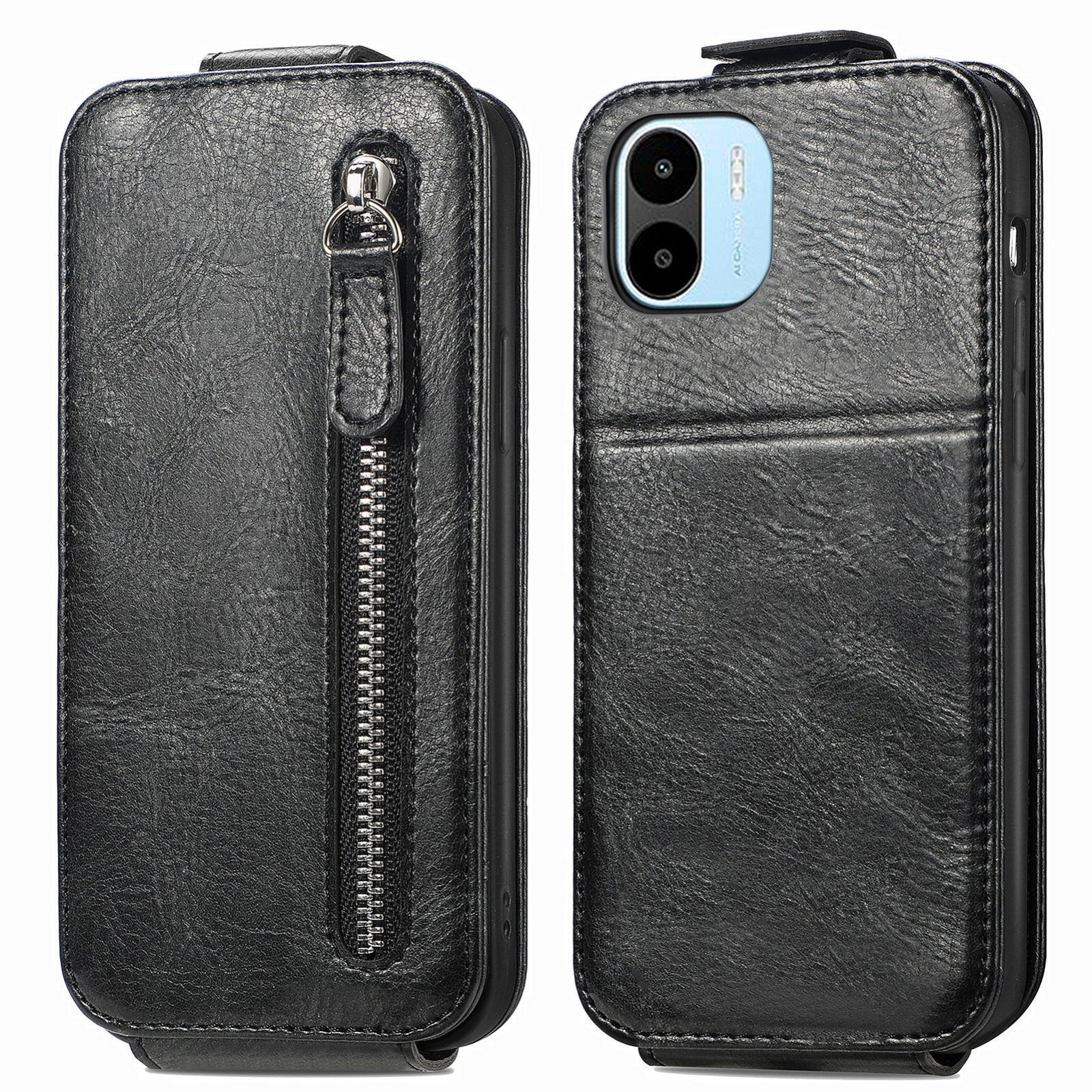 Xiaomi Redmi A1+ Zipper Wallet Case - Vertical Flip Leather Phone Cover with Multiple Card Slots and Stand