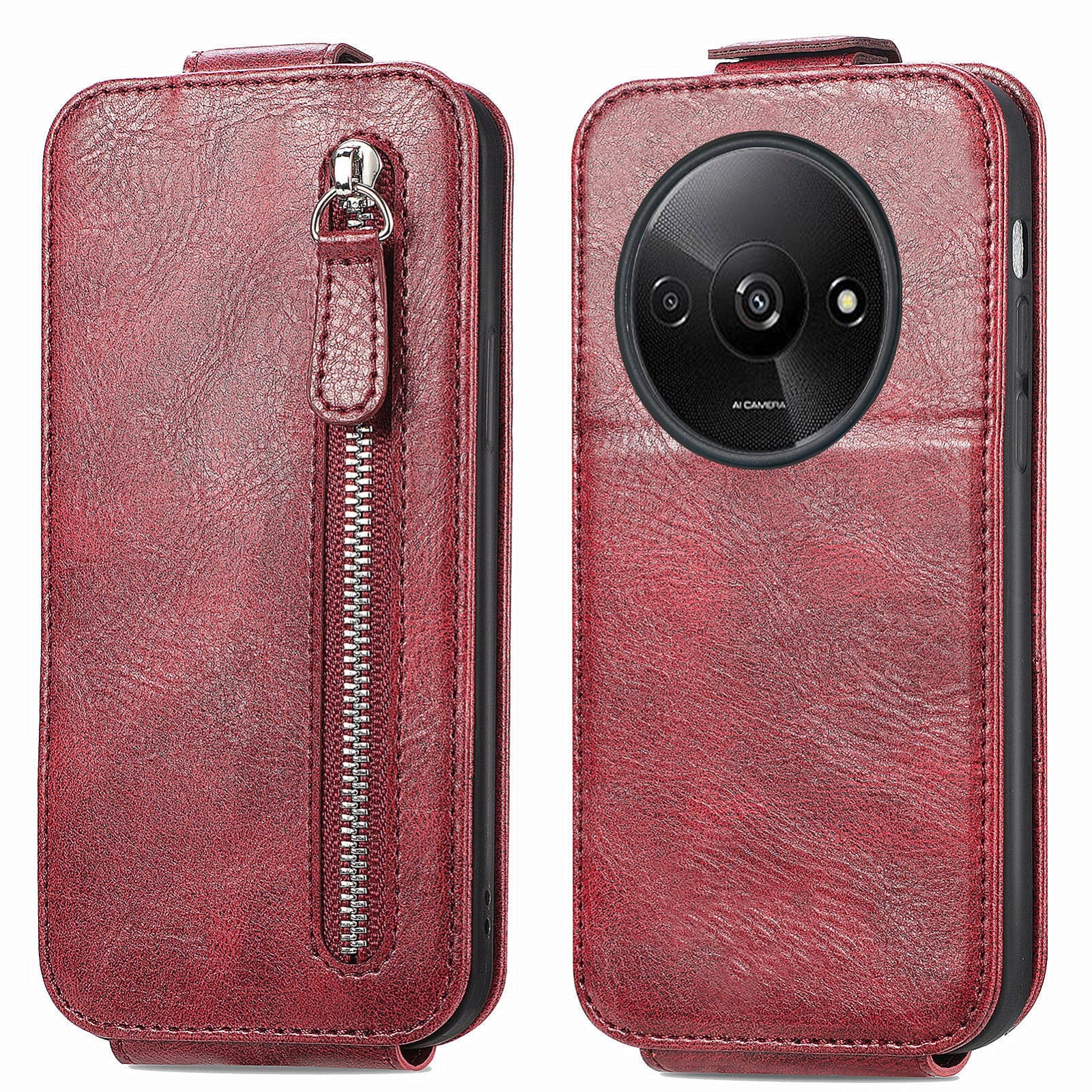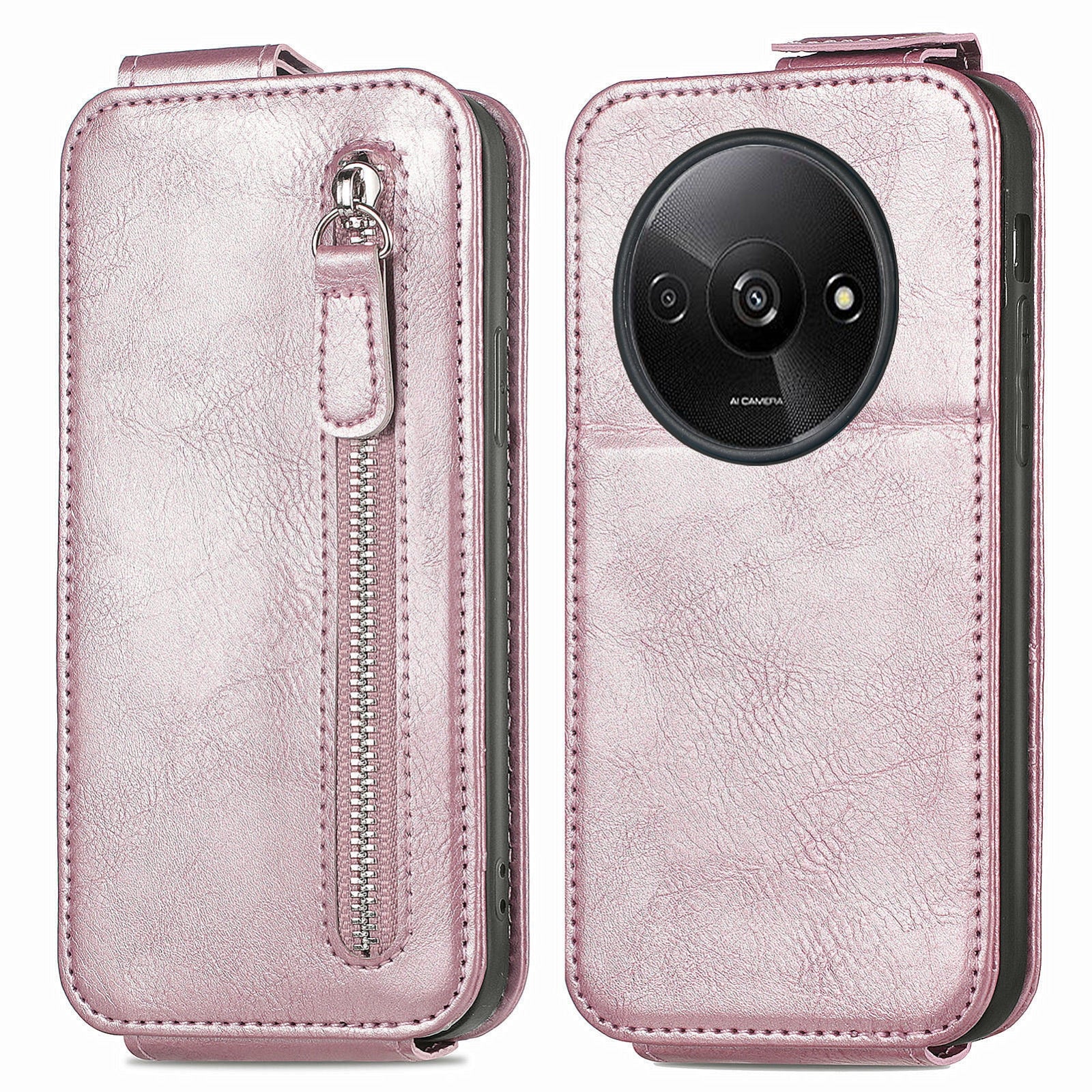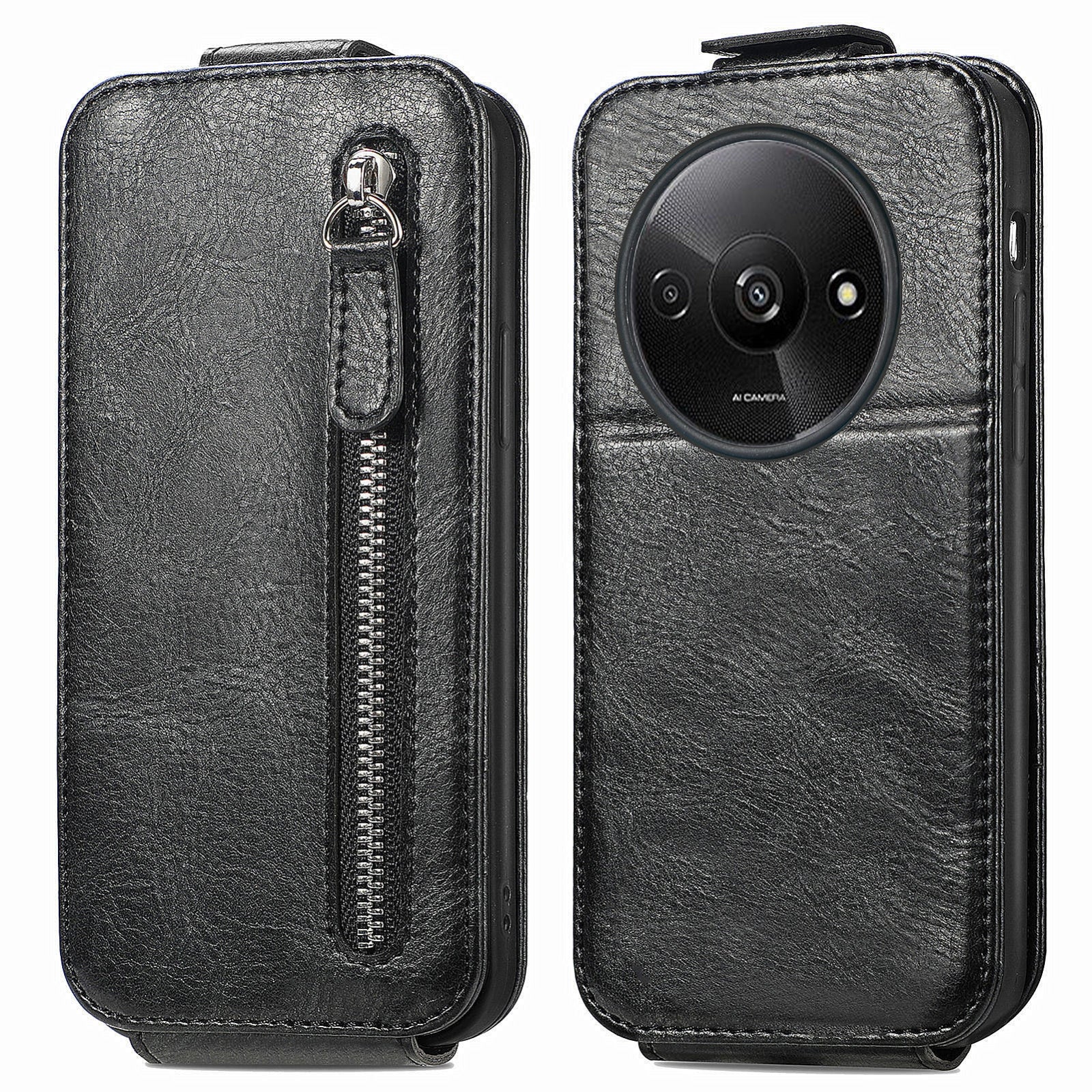 Xiaomi Redmi A3 4G Zipper Wallet Case - Vertical Flip Leather Phone Cover with Multiple Card Slots and Stand